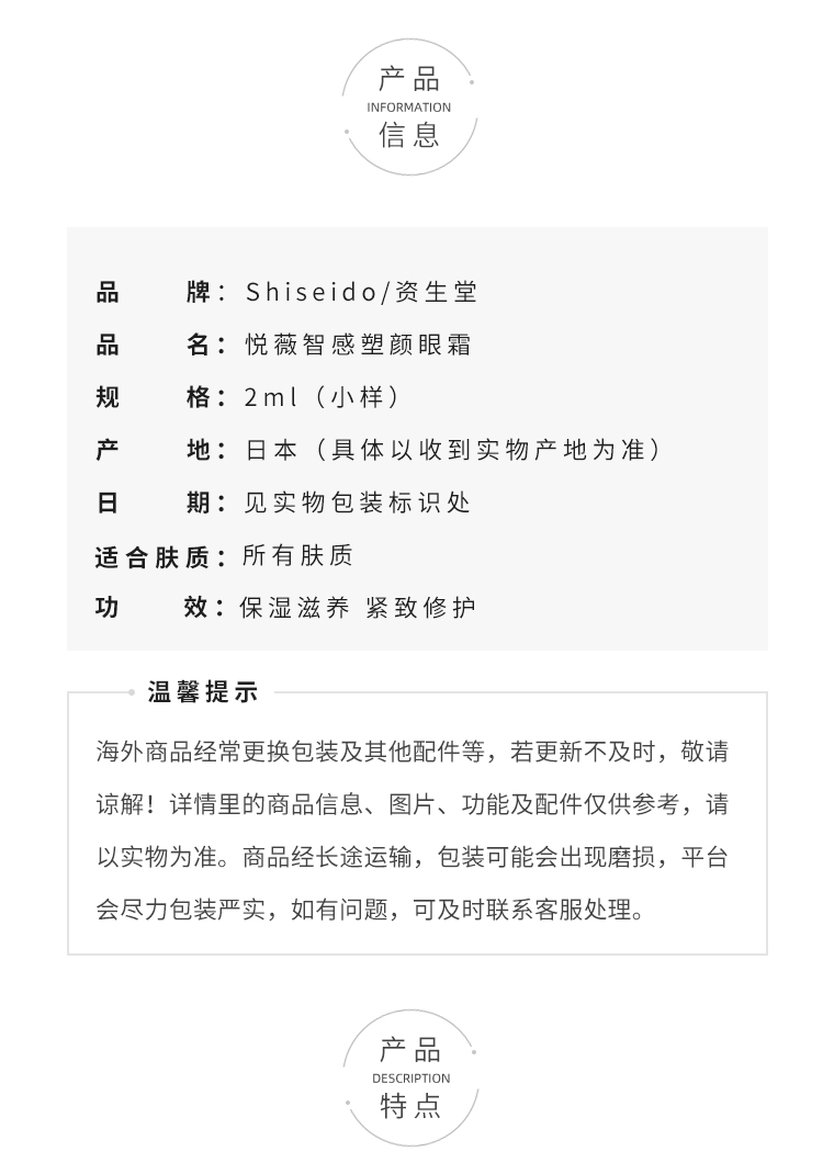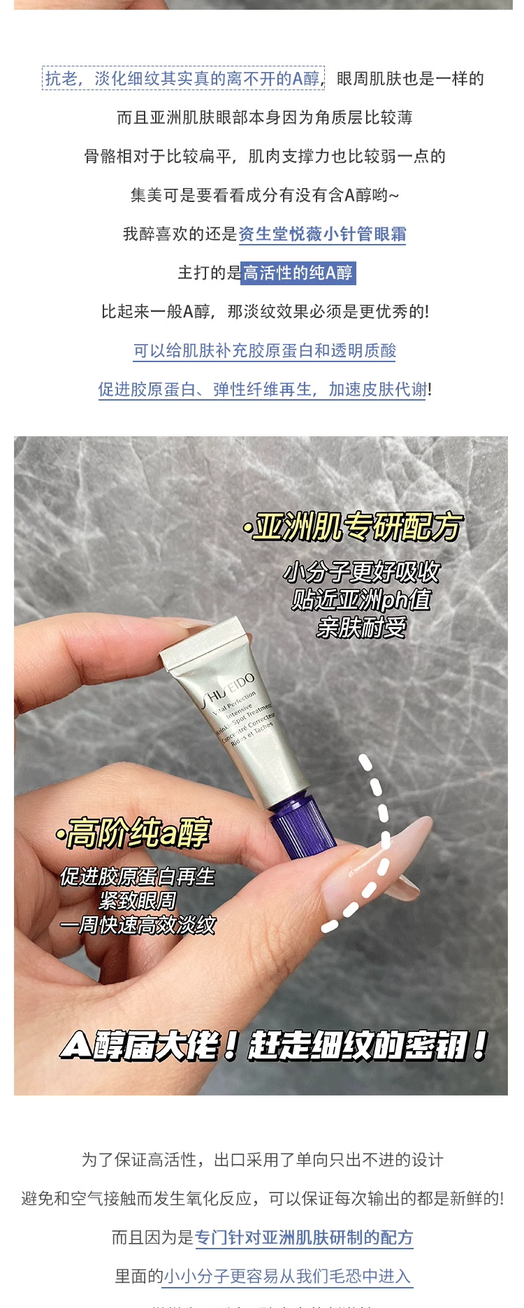 【99任选3件】资生堂纯A小针管眼霜2ml小样 悦薇智感塑颜眼霜 淡纹紧致纯A小针管眼霜小样
