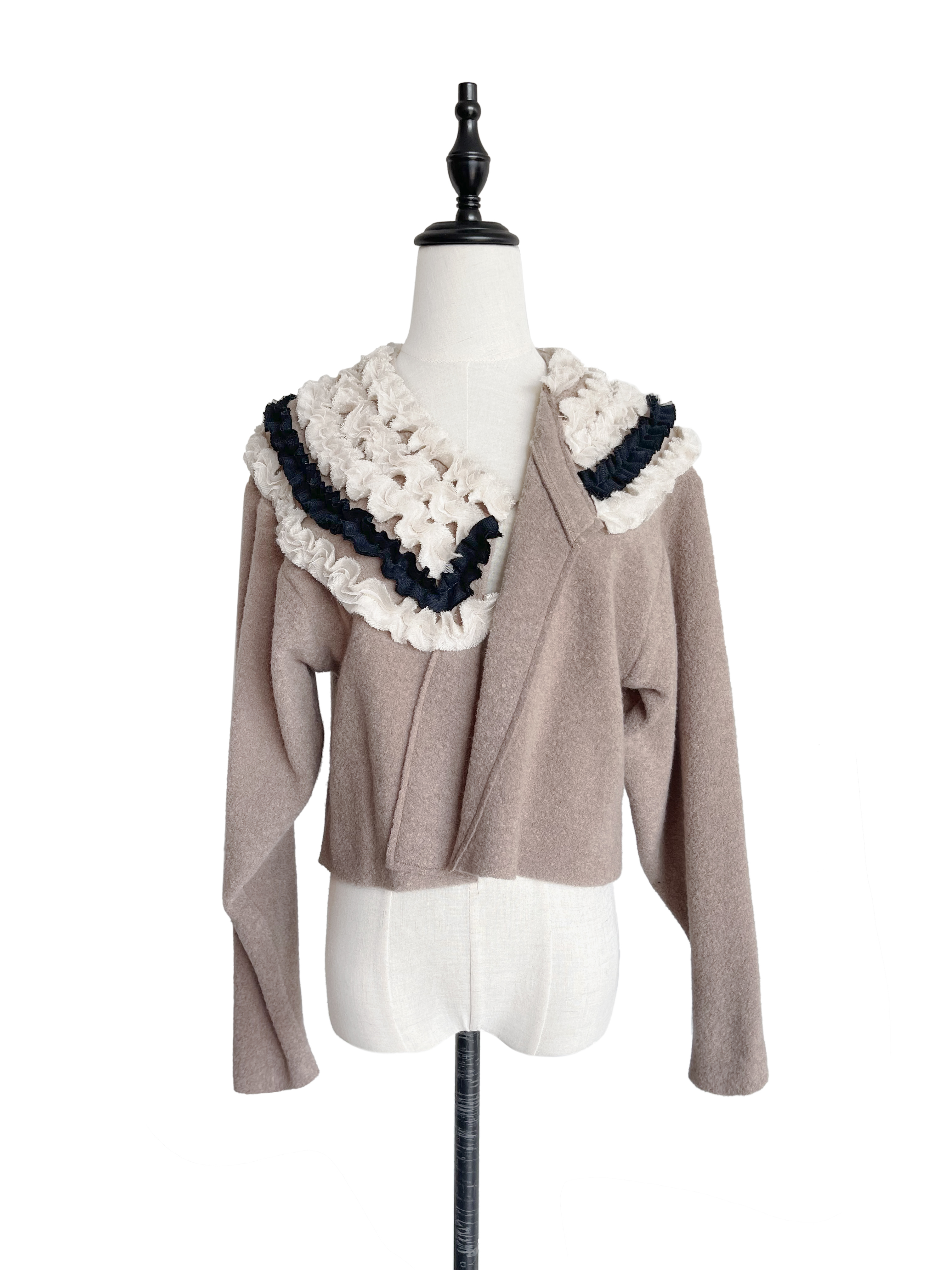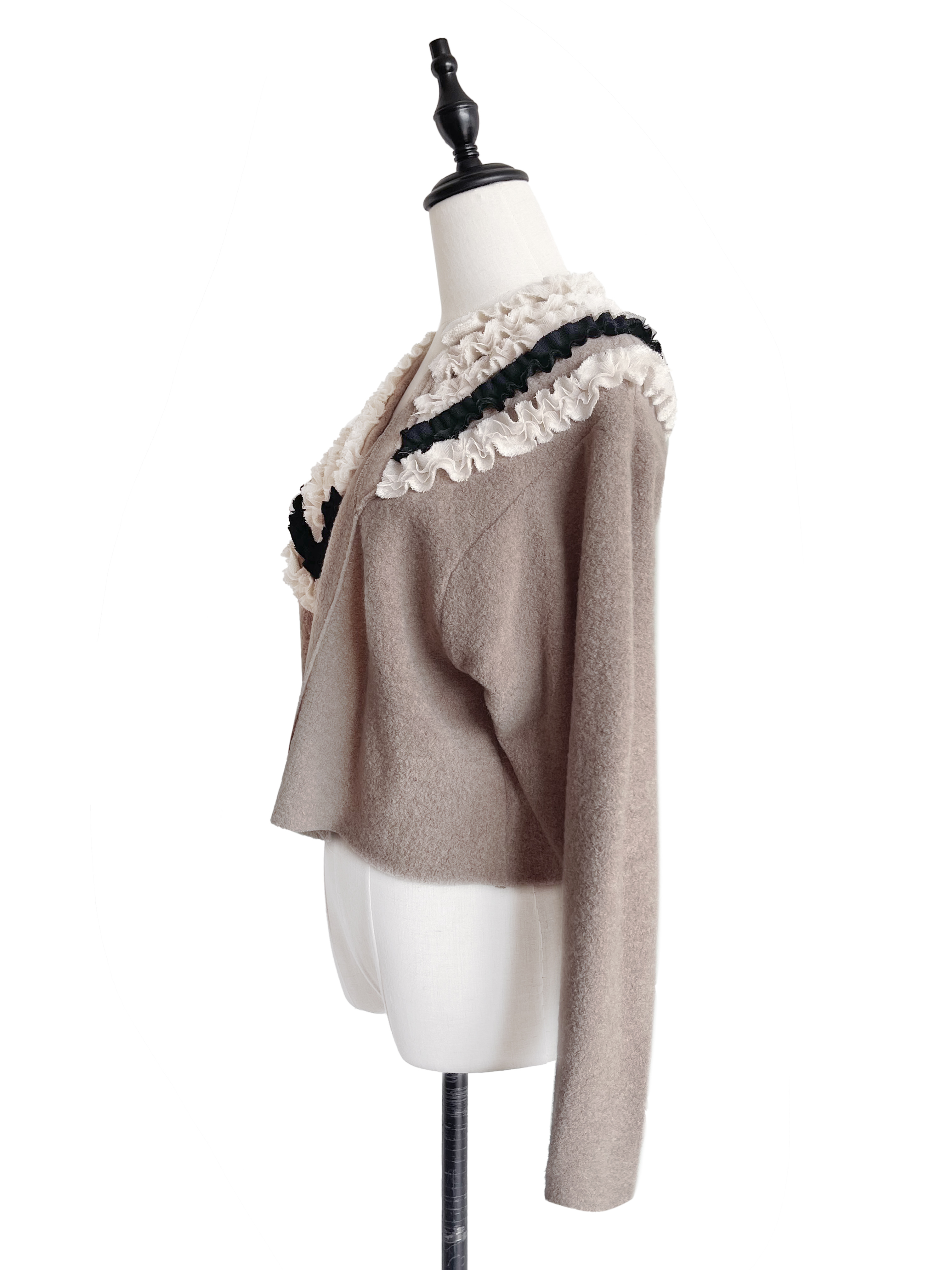 TYNVIE 多花边装饰不对称短款开衫