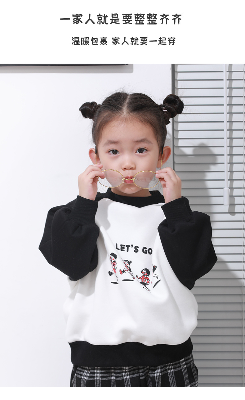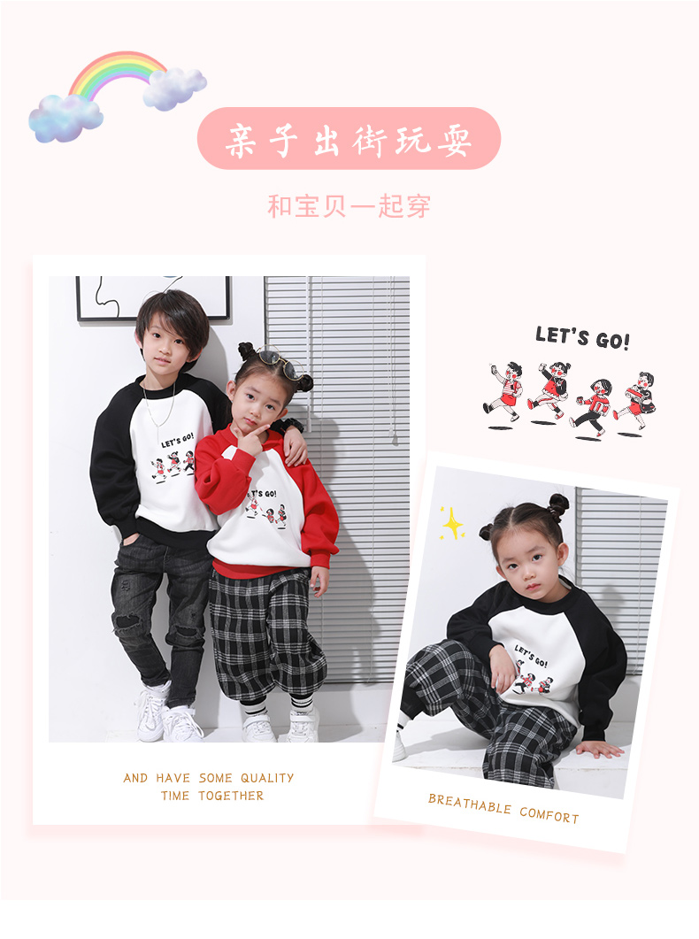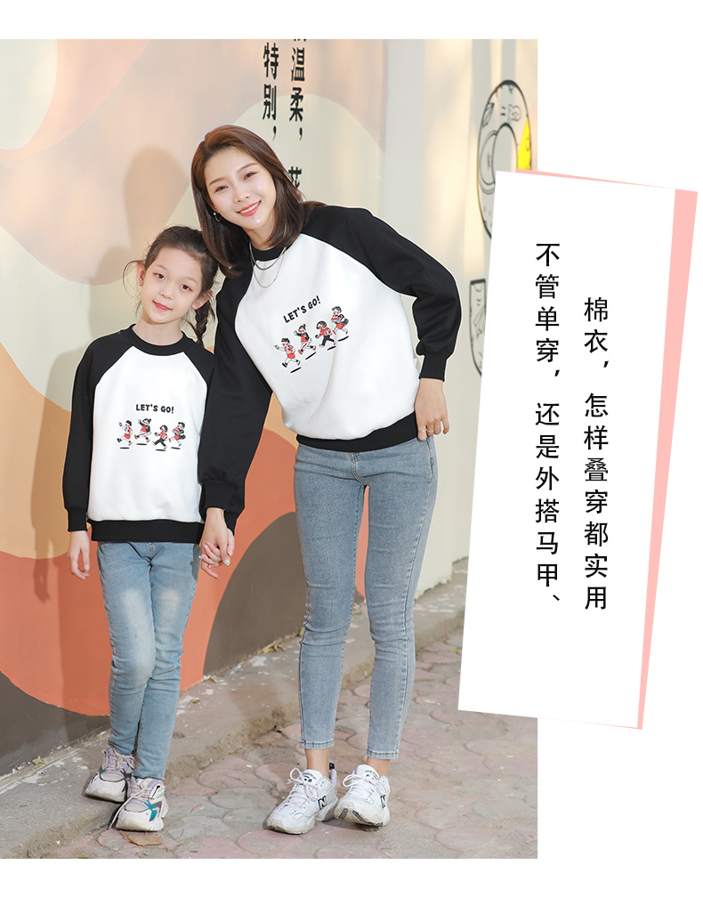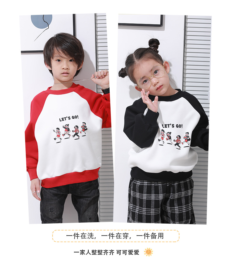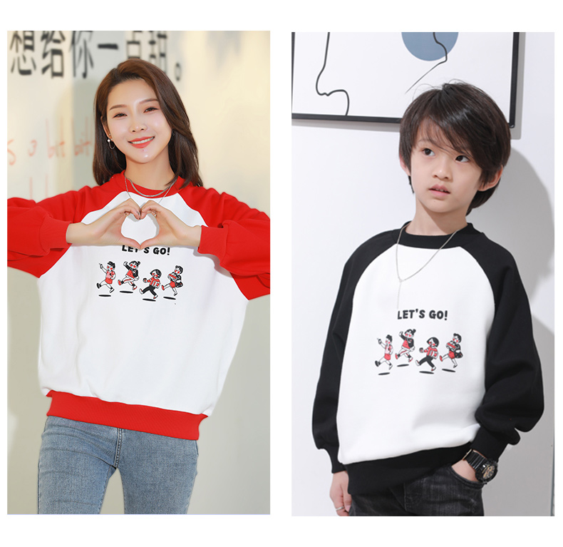 【亏本清仓 不退不换】龙之涵 亲子郊游插肩加绒卫衣 中大童保暖上衣 精美印花 A类标准