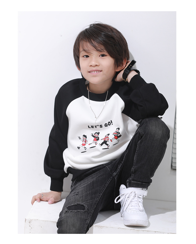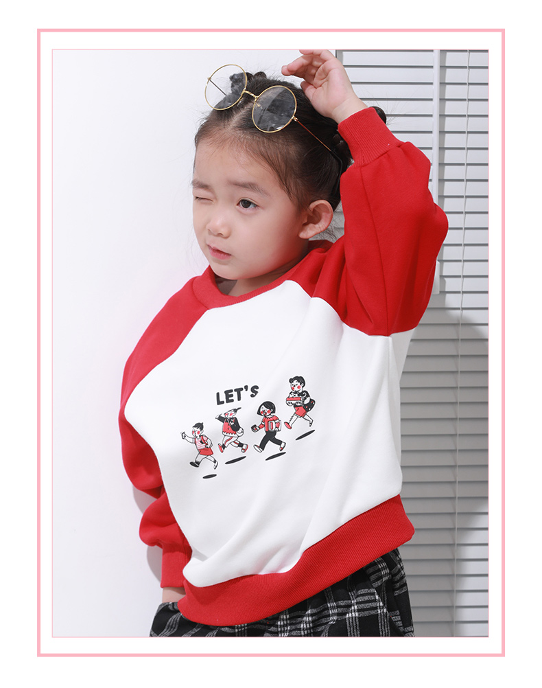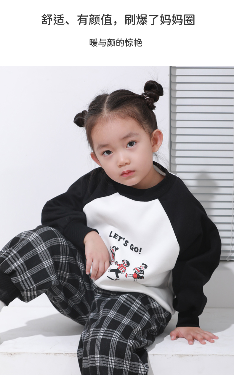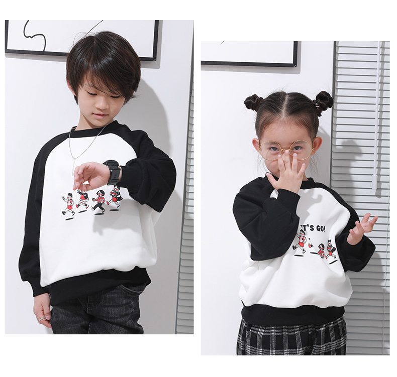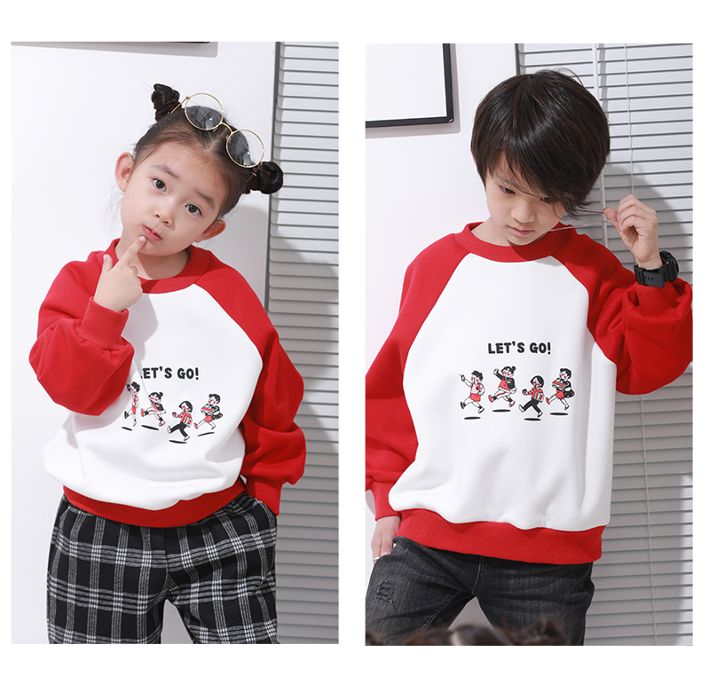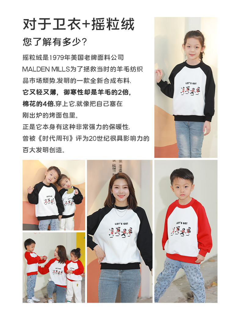 【亏本清仓 不退不换】龙之涵 亲子郊游插肩加绒卫衣 中大童保暖上衣 精美印花 A类标准