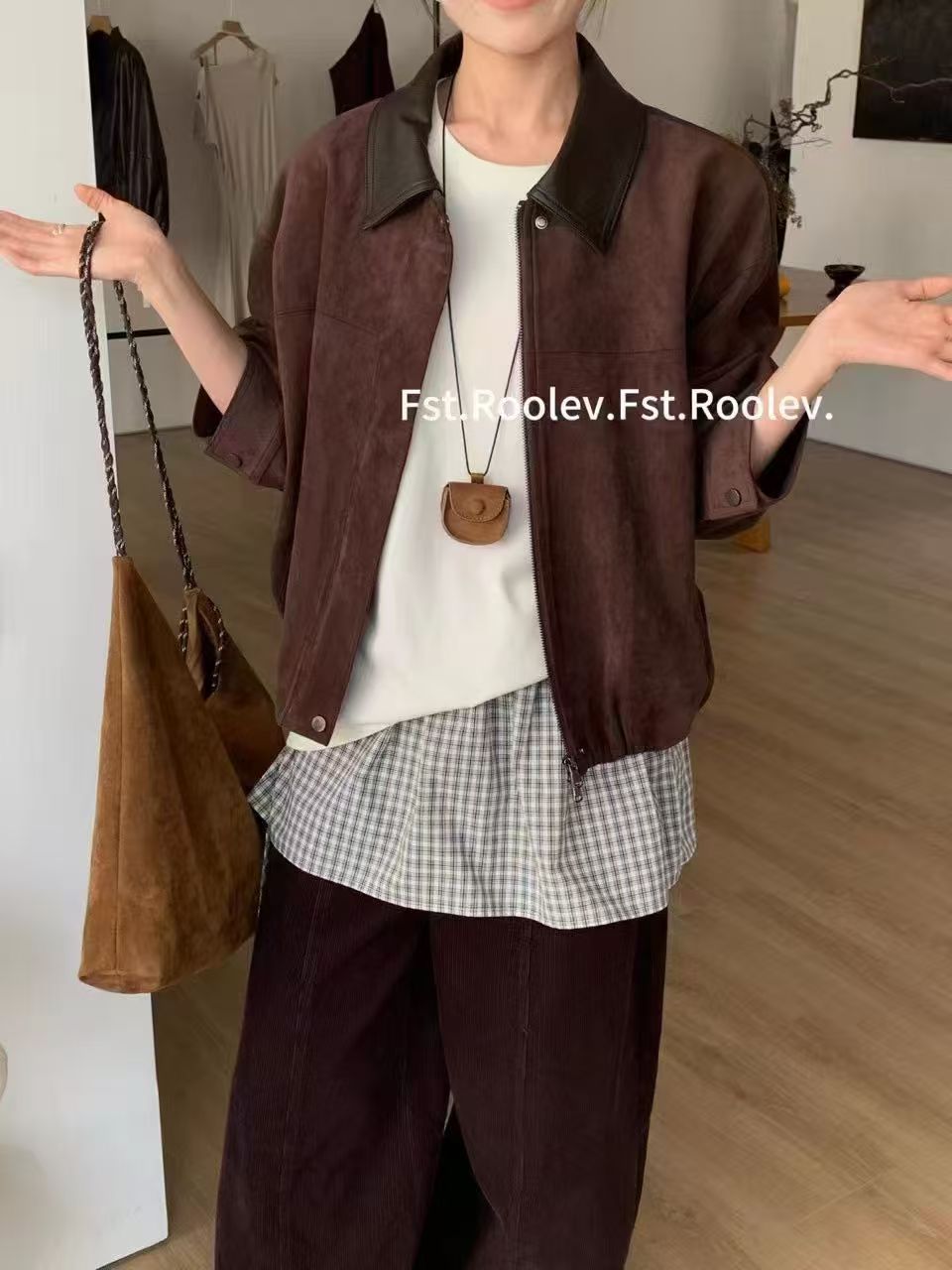GZ兔绒加厚内胆翻领韩系高级感麂皮绒外套(LH)(LD)-纪念日百货168196001
