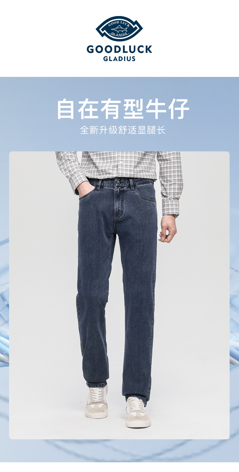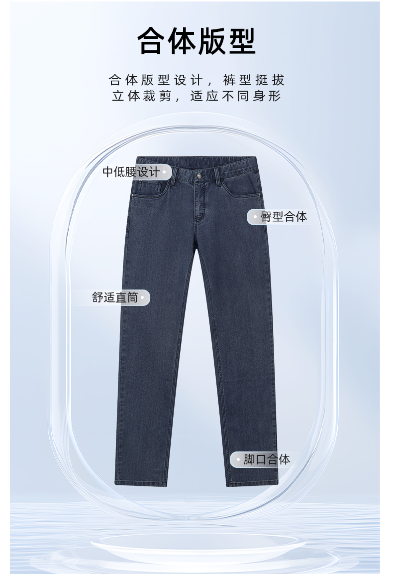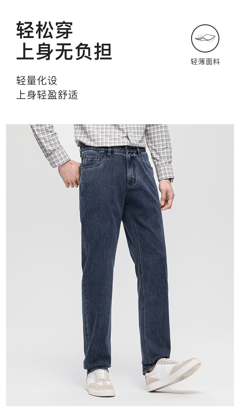 德鲨鲨鱼男装蓝色牛仔裤2026夏新款休闲百搭裤子直筒长裤