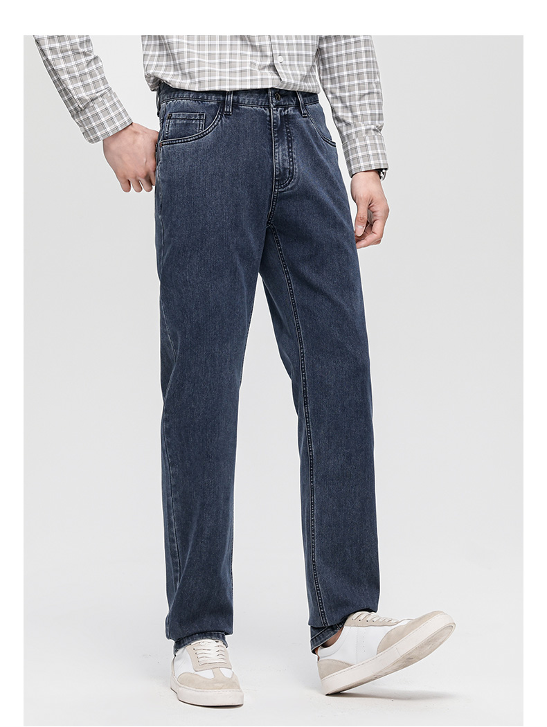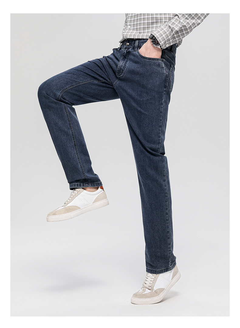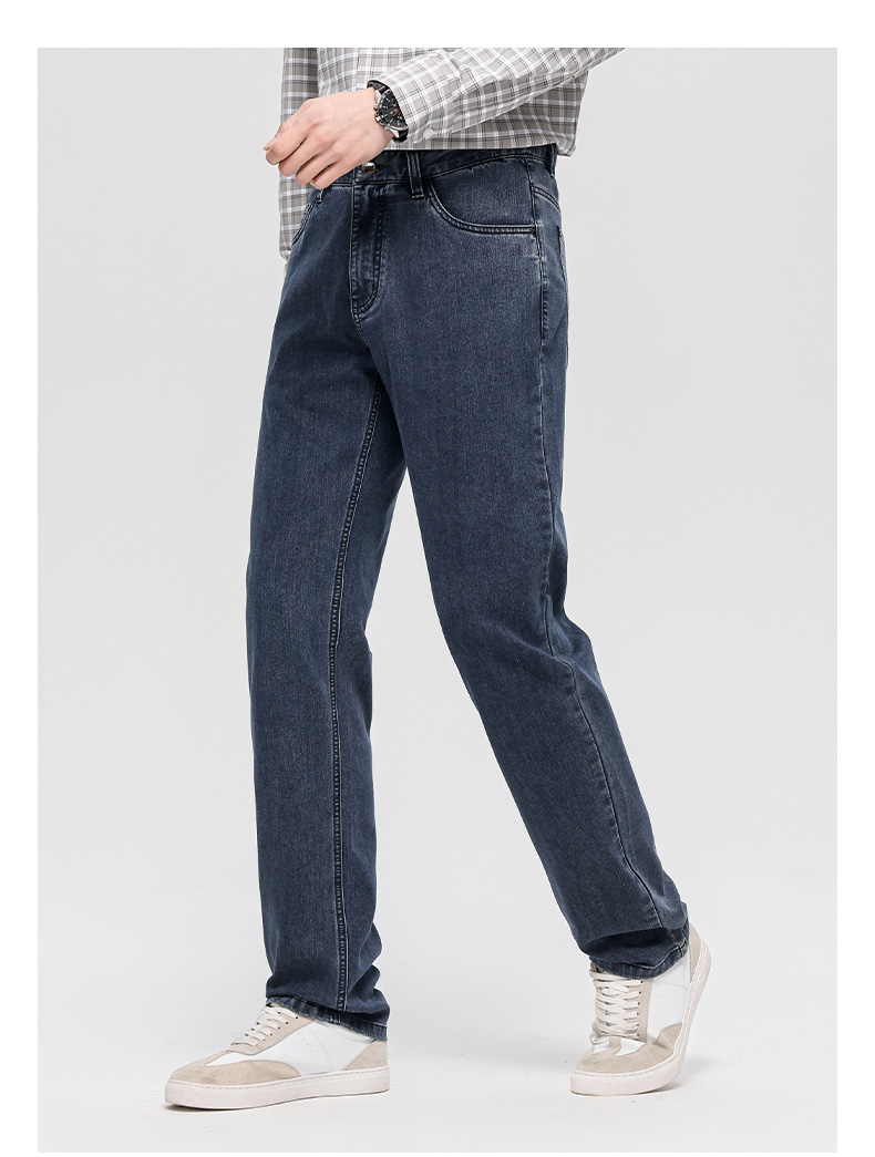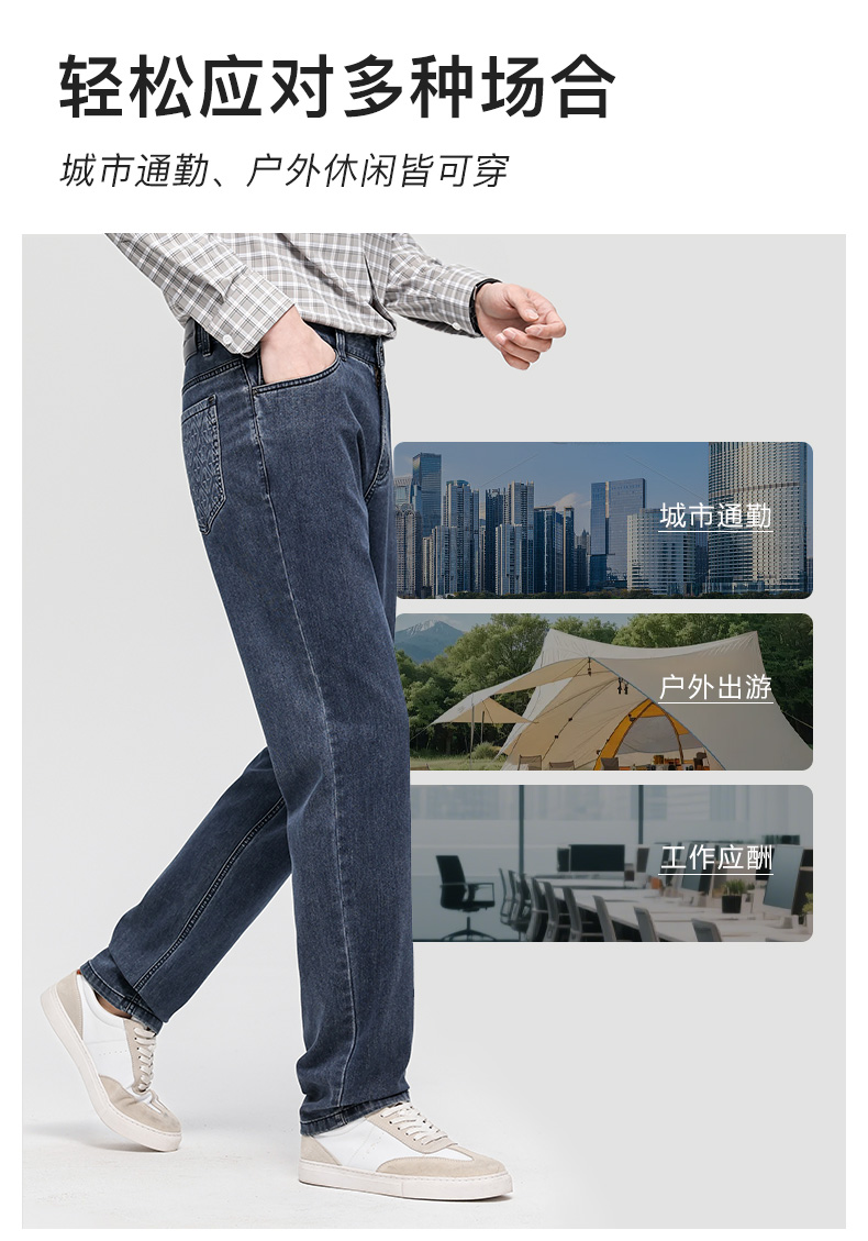 德鲨鲨鱼男装蓝色牛仔裤2026夏新款休闲百搭裤子直筒长裤