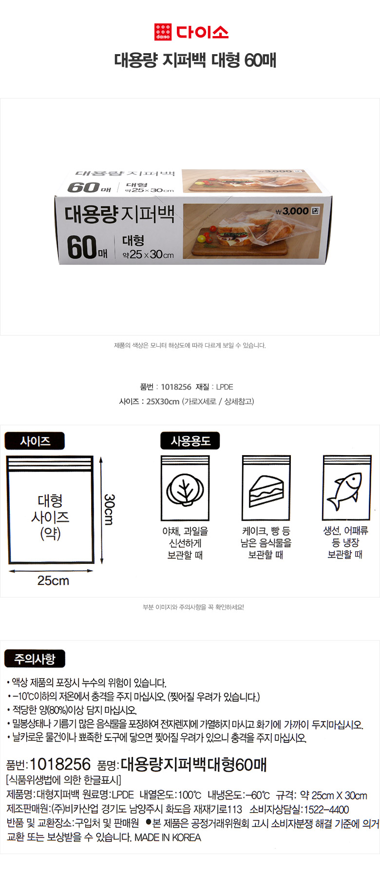 大容量拉链袋大60张-1018256 大创保鲜袋 Daiso Hygienic bagJPY带授权招加盟代理