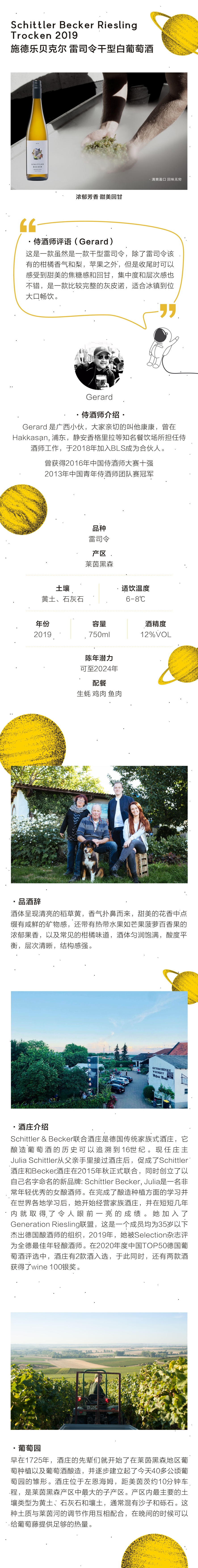 【柑橘菠萝香】德国施德乐贝克尔雷司令干型白葡萄酒 Schittler Becker Riesling Trocken 2020