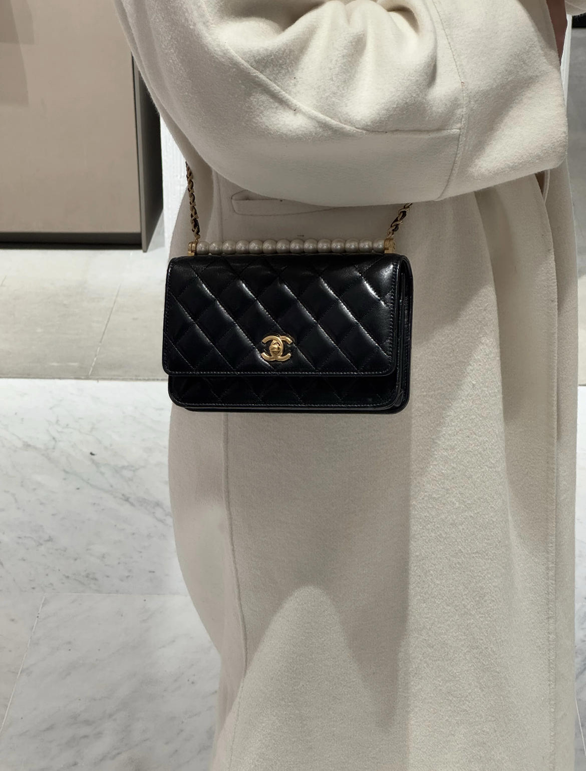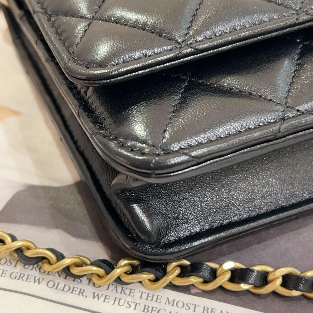 【商品详情】正品二手 Chanel 黑金 珍珠 羊皮 woc 发财包🫧97新 19*12 新钢标 配件:小票 说明书 防尘袋。包背面和内翻盖有轻微小压痕。25年新款4月刚刚抱出柜