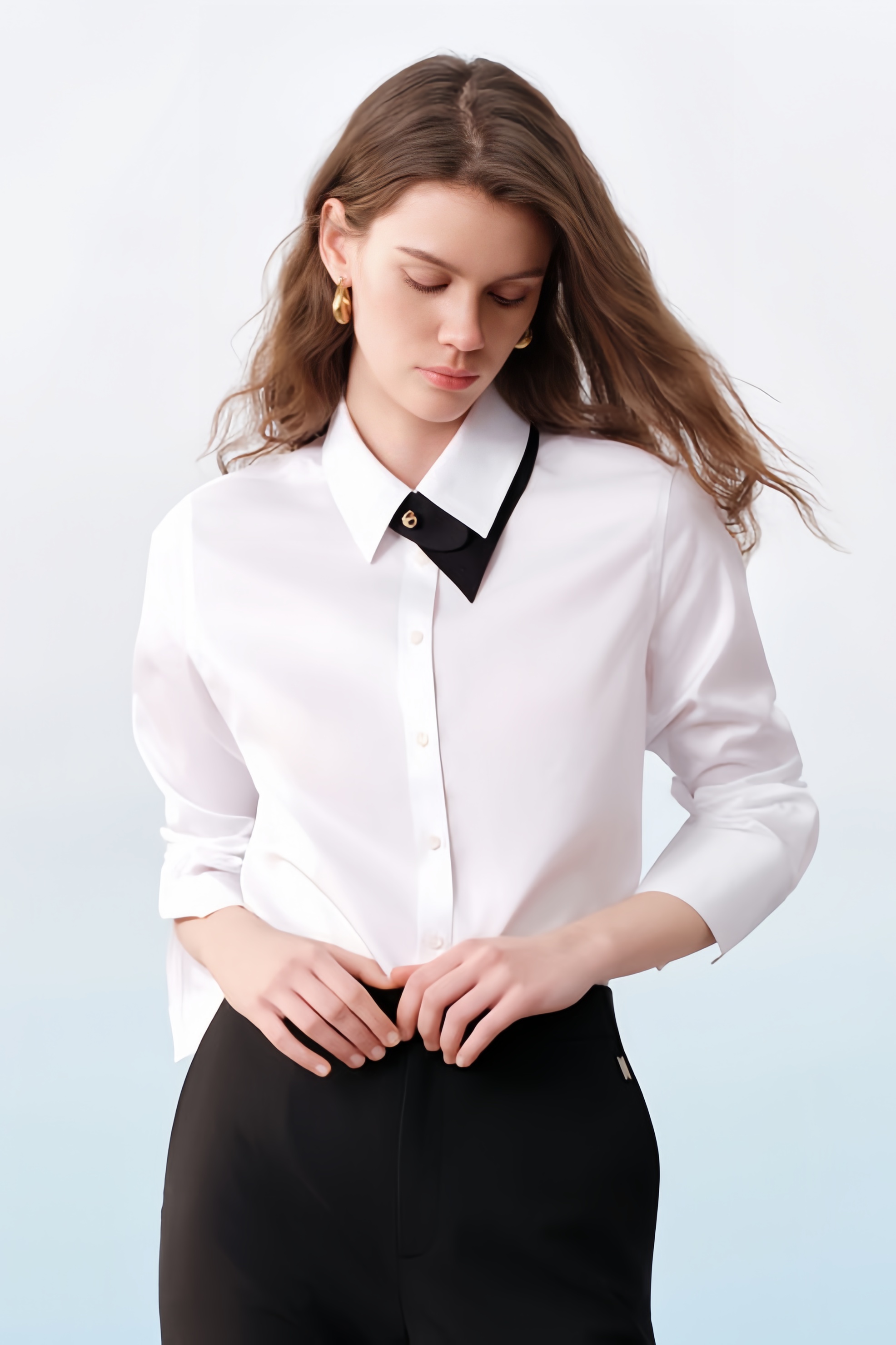 G2000女装SS26商场新款【BLACK]【棉桑蚕丝混纺/免烫防皱】修身衬衫61925003