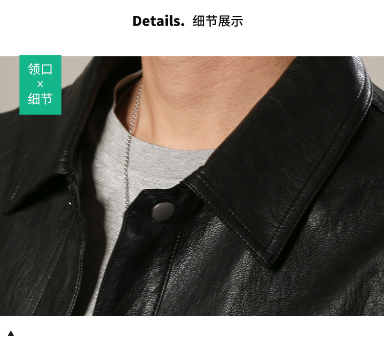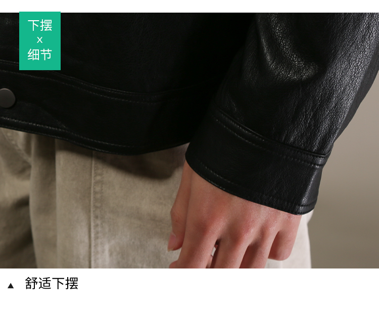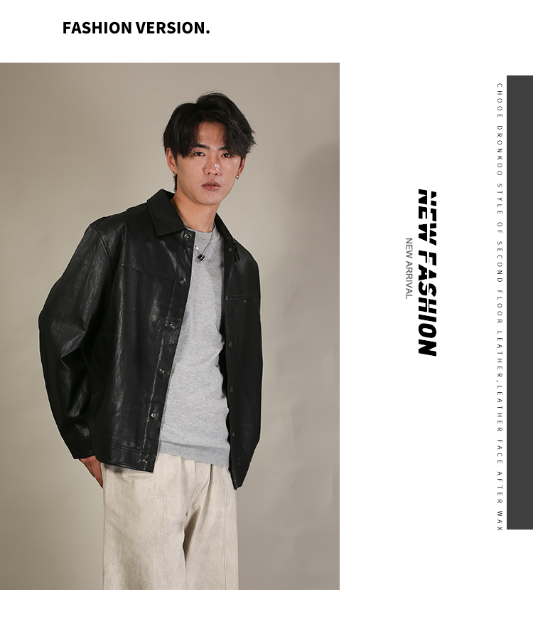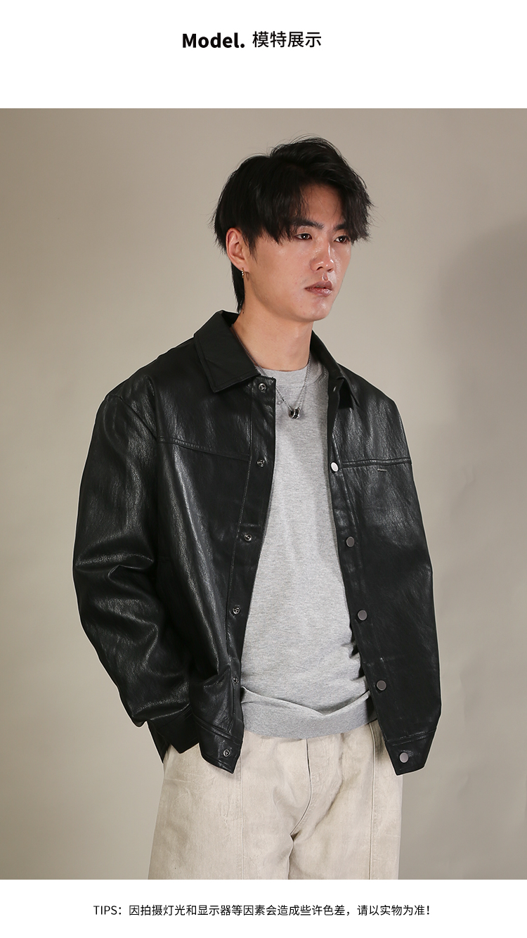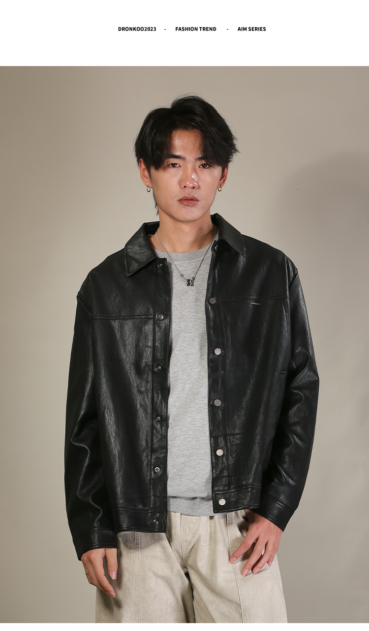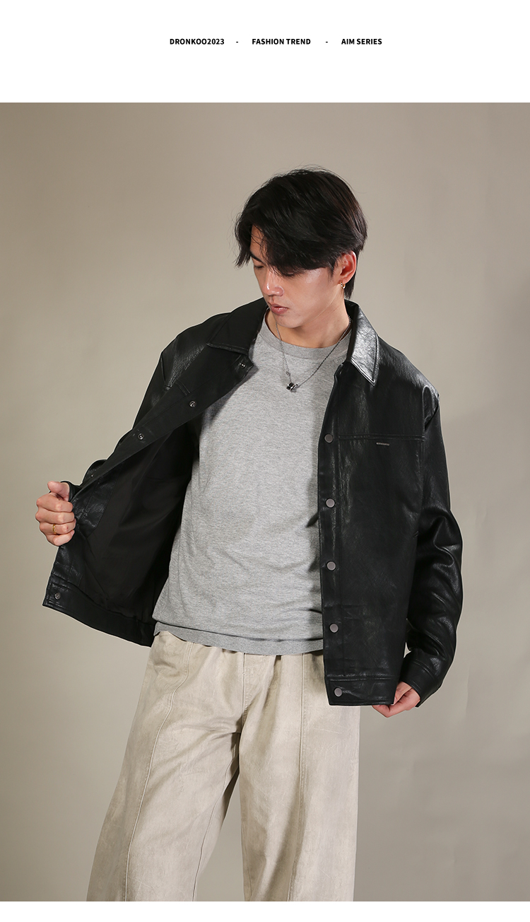 DRONKOO 2026 翻领左金属标口袋双层仿真皮修身中厚皮衣