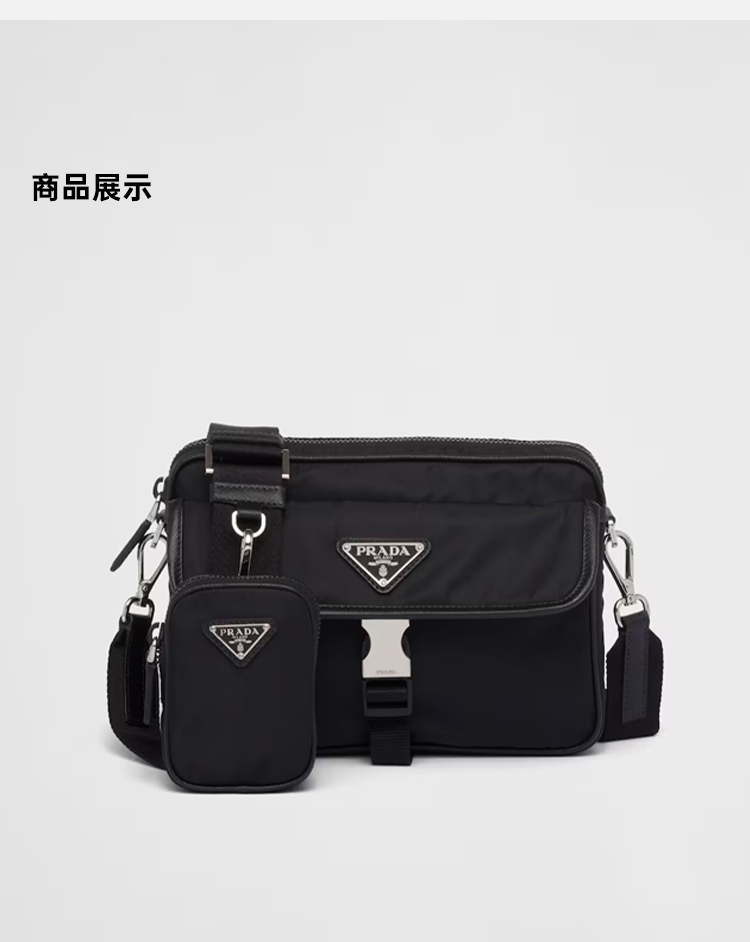 【一】PRADA 普拉达 男士Re-Nylon和Saffiano皮革子母单肩包 黑色 2VH133 2DMH F0002 XMP