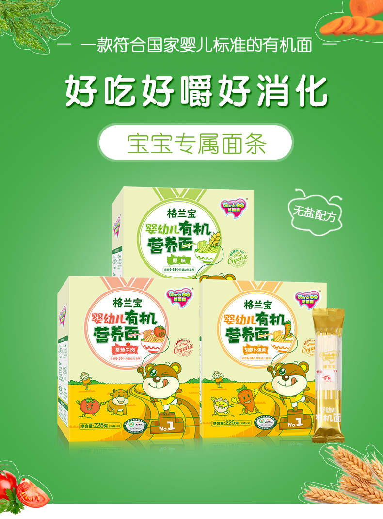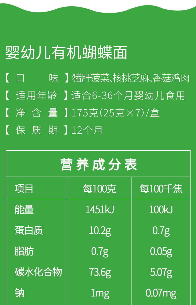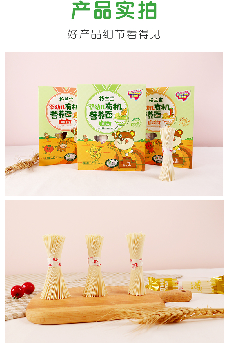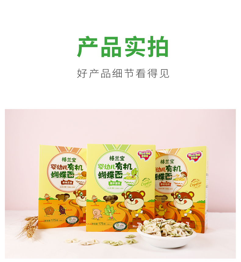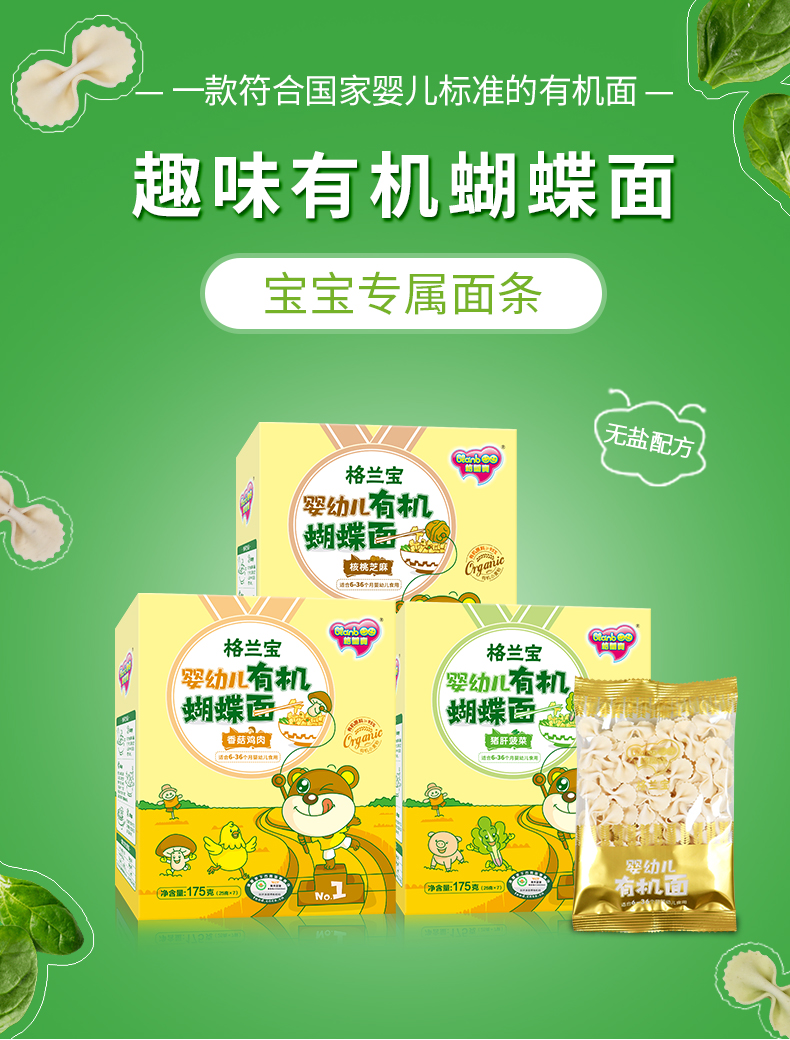 双11-格兰宝原味有机营养面+格兰宝猪肝菠菜有机蝴蝶面