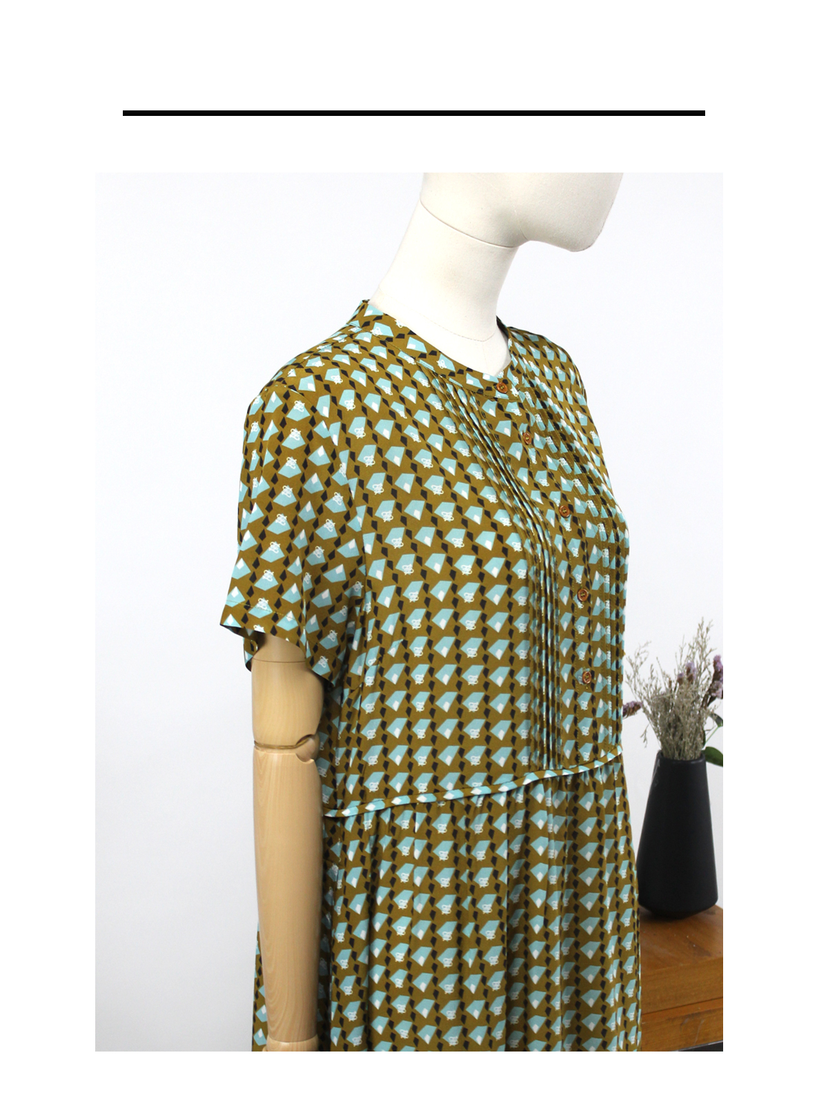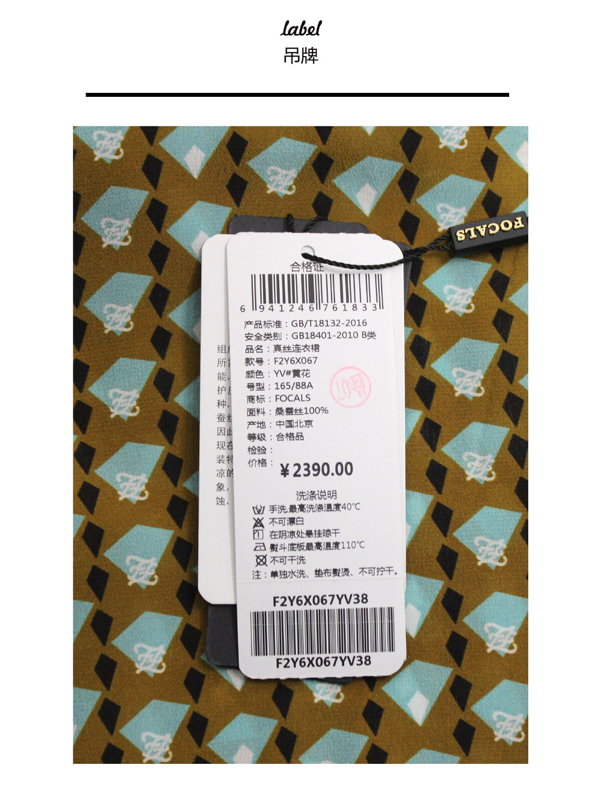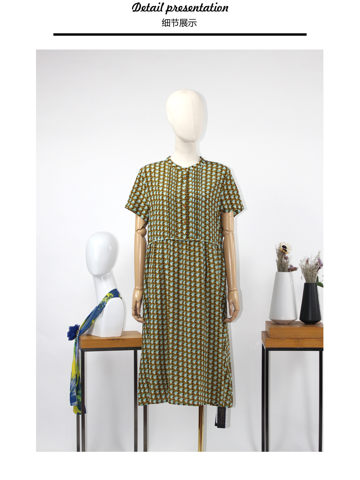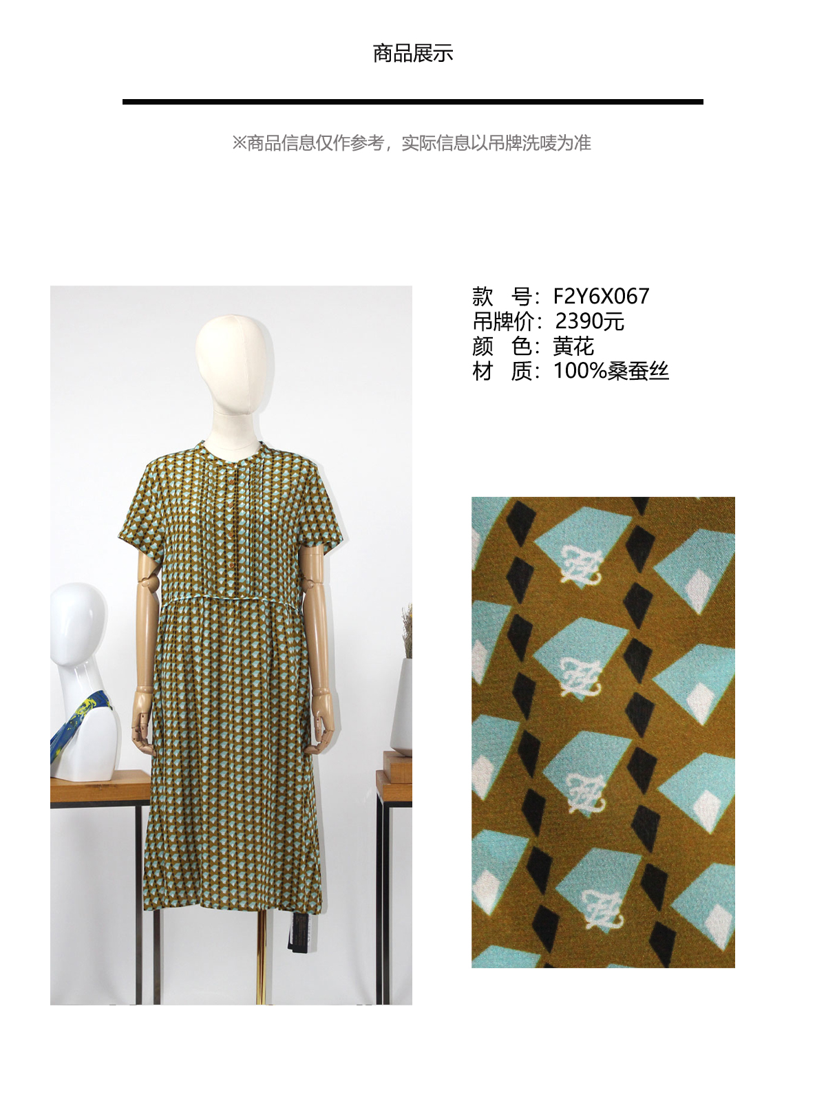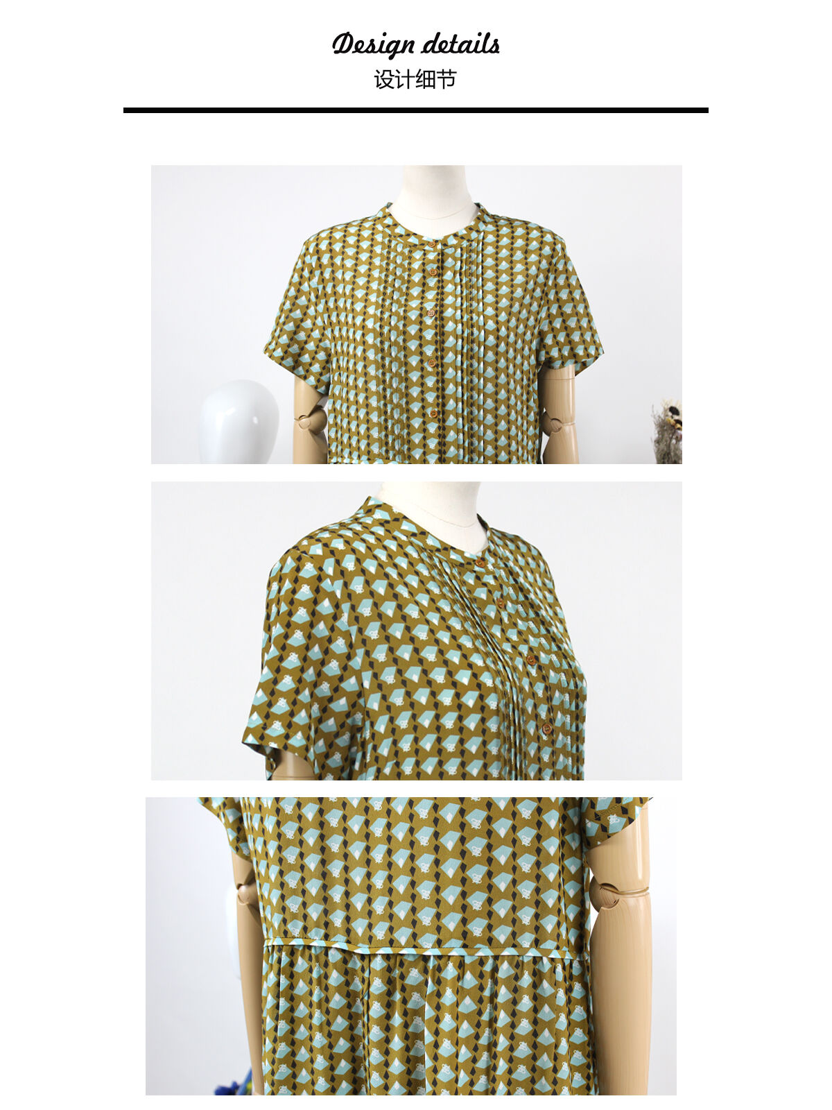 FOCALS福柯斯夏季桑蚕丝圆领短袖几何印花中长款连衣裙F2Y6X067YV