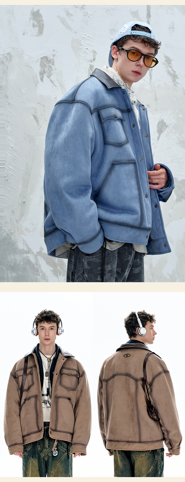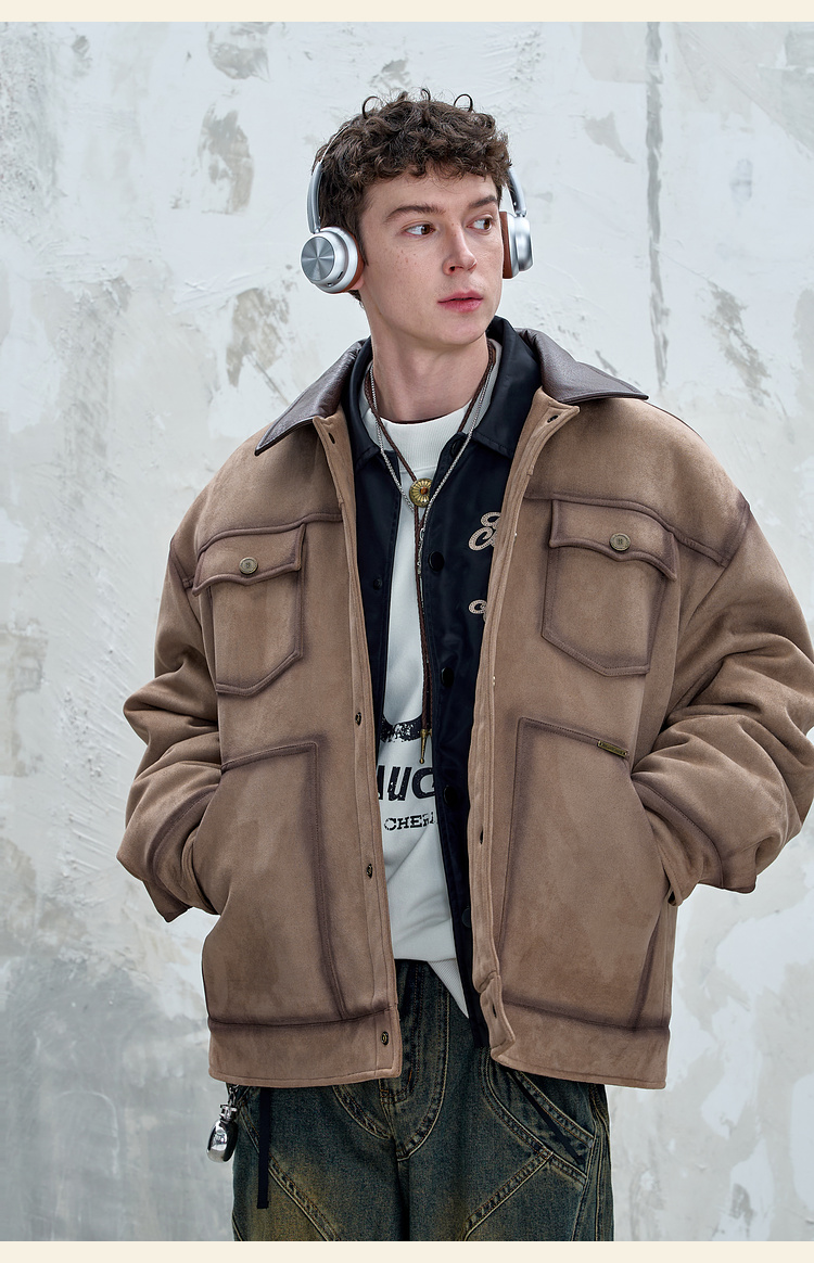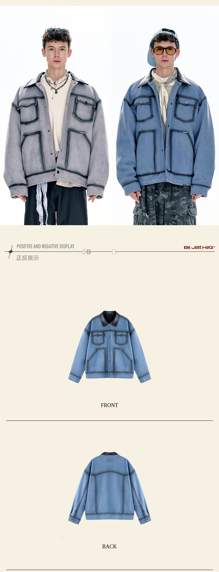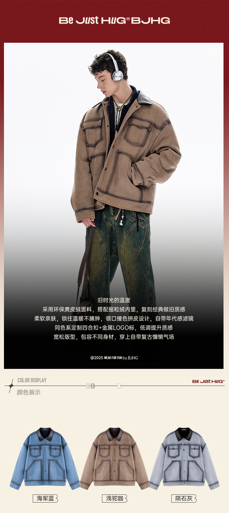 BJHG不计后果环保麂皮绒棉服外套男女款冬季复古做旧撞色保暖棉衣