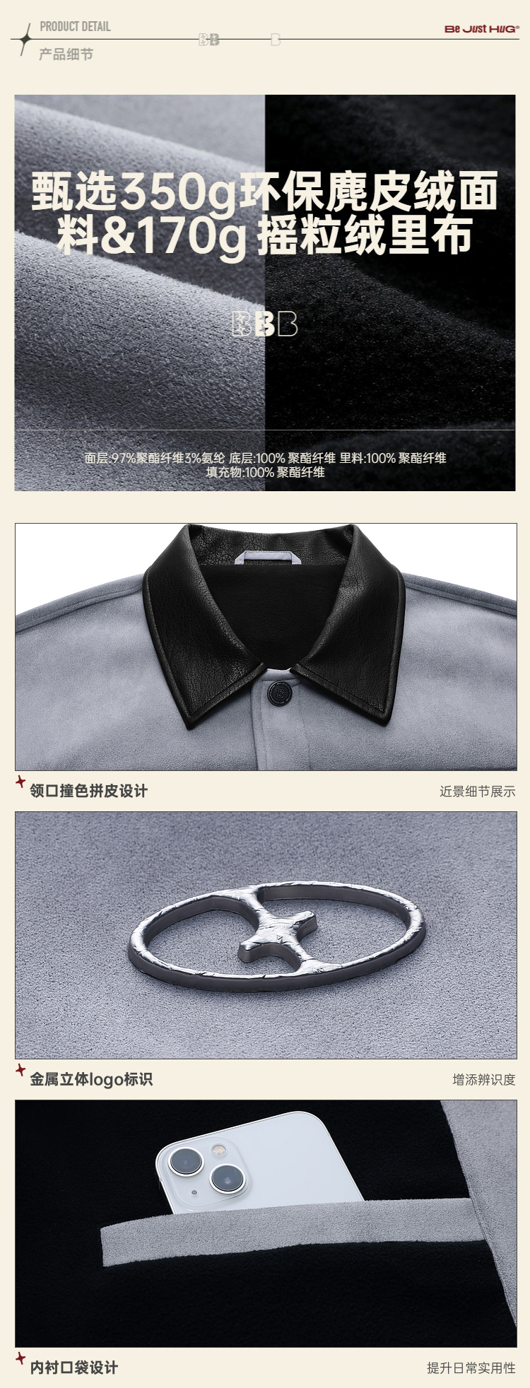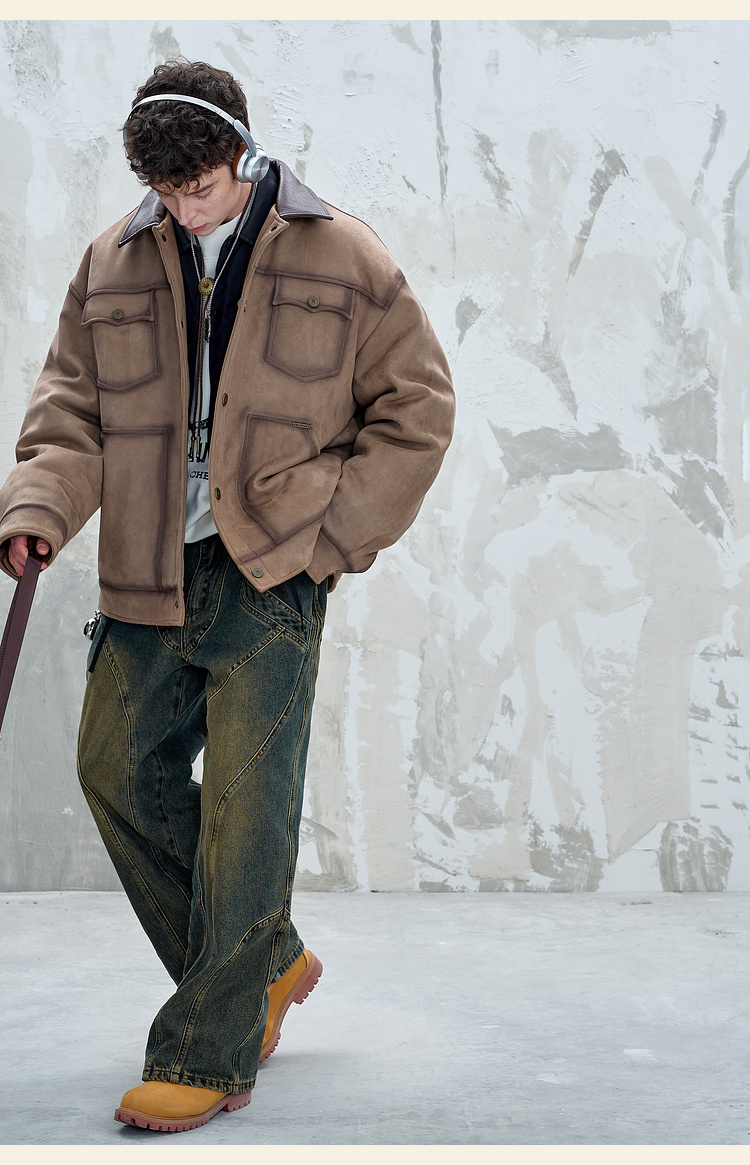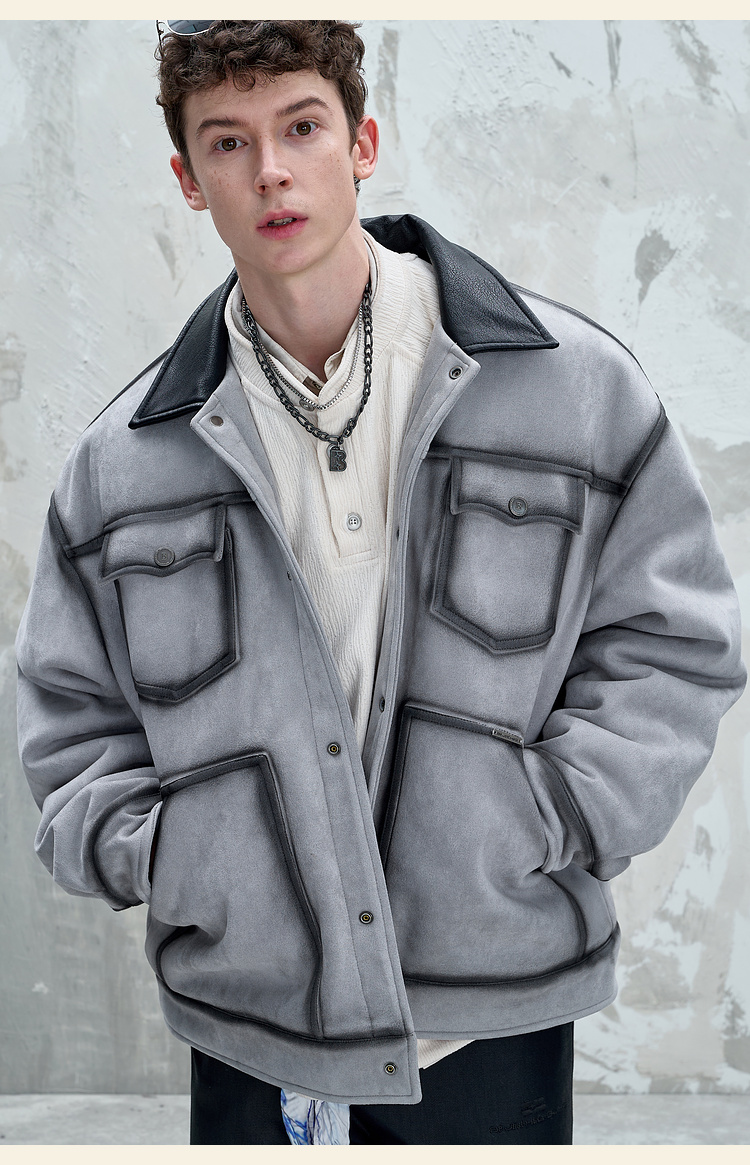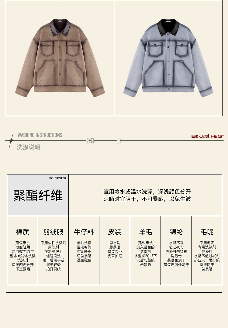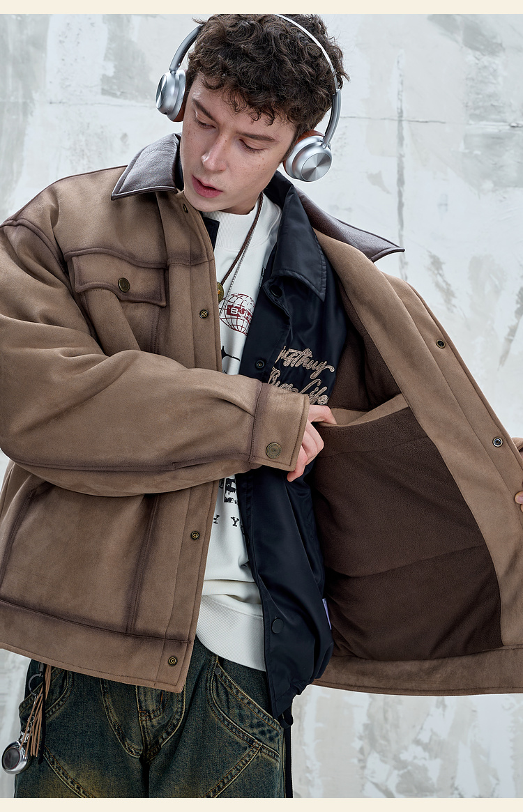 BJHG不计后果环保麂皮绒棉服外套男女款冬季复古做旧撞色保暖棉衣