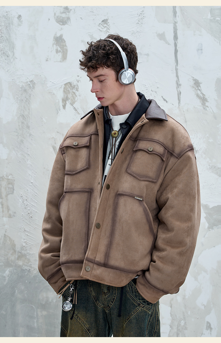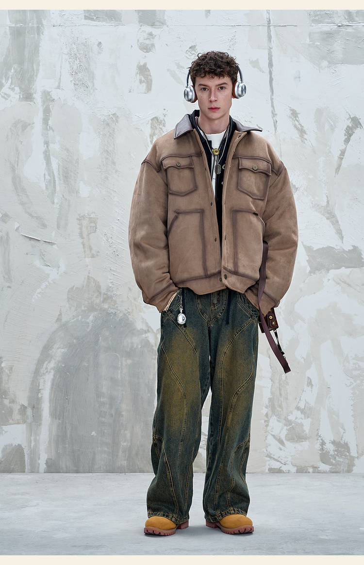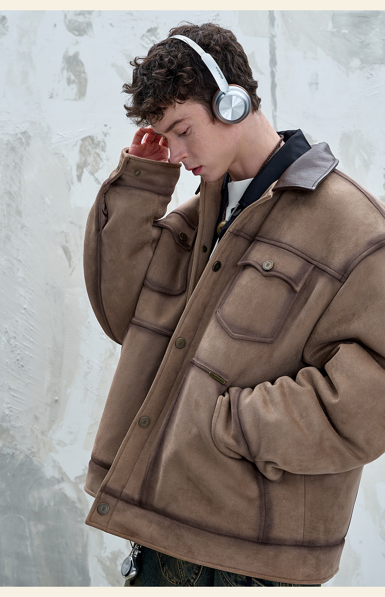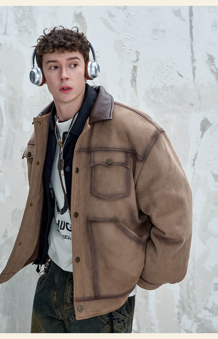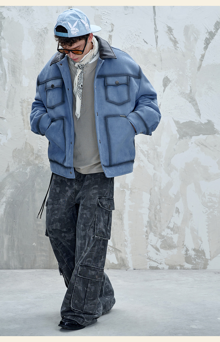 BJHG不计后果环保麂皮绒棉服外套男女款冬季复古做旧撞色保暖棉衣