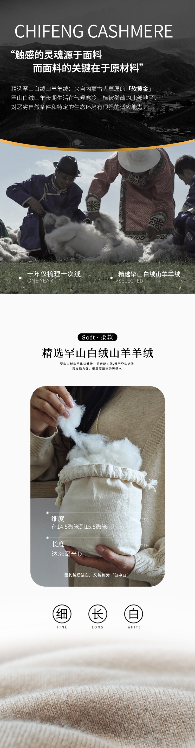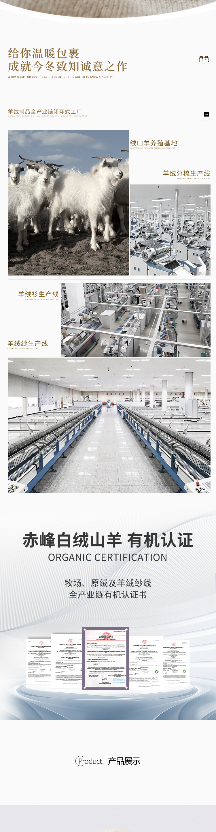 东黎羊绒是赤峰东荣集团自主品牌,自有牧场/羊绒制品全产业链优势,实现了羊绒从“牧场”到“商场”的华丽转变。