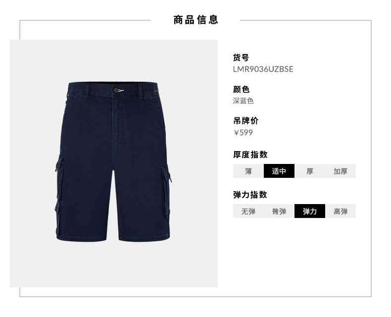 Lee都市骑士21春夏新品舒适工装风深蓝色男牛仔短裤LMR9036UZBSE