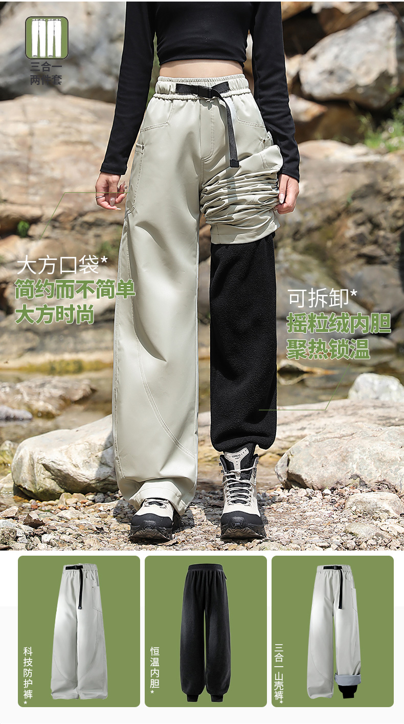 LUCKY DEER幸运鹿情侣款轻户外山系特氟龙三防保暖抓绒脱卸裤