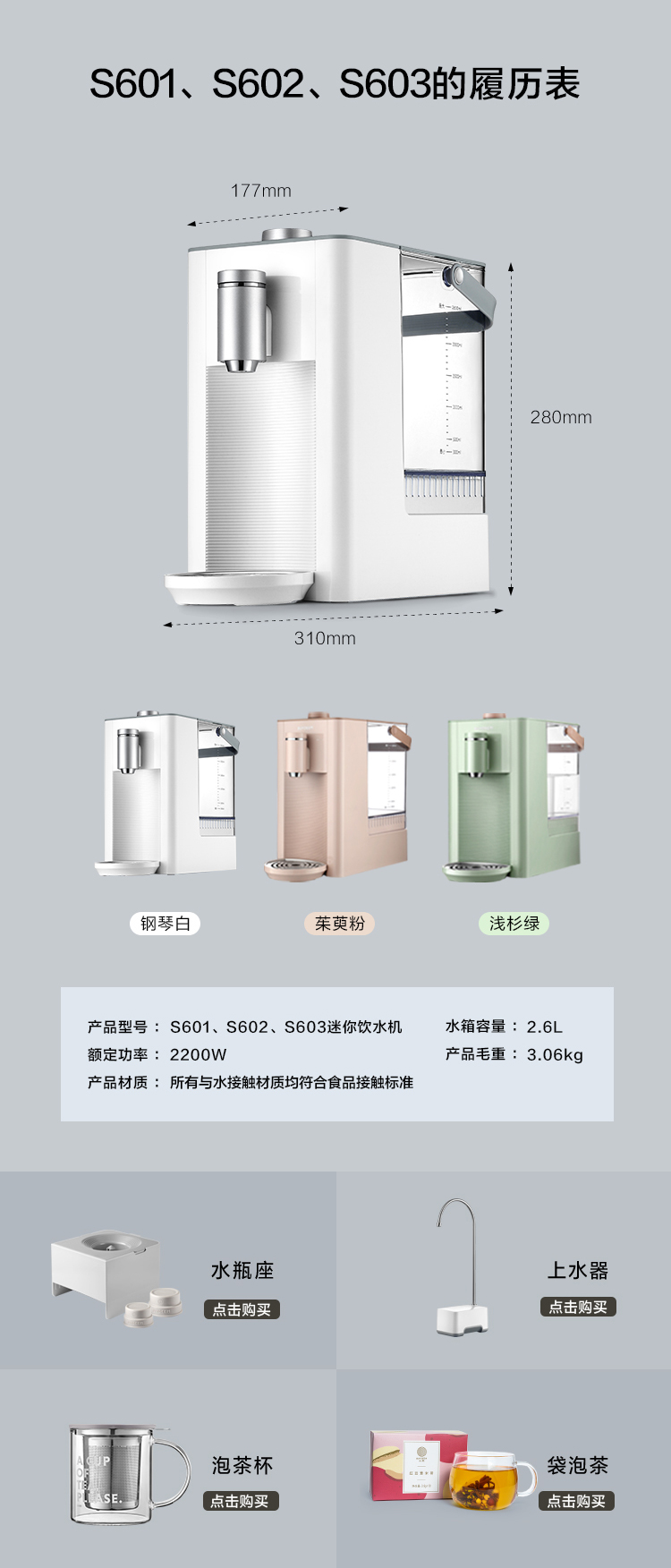 Buydeem/北鼎 即热式饮水机家用速热小型桌面迷你婴儿泡奶机S603
