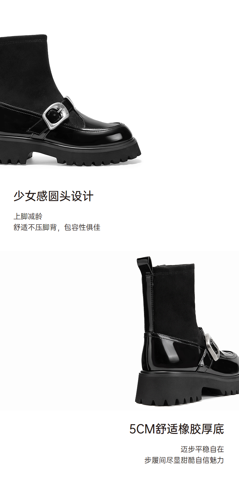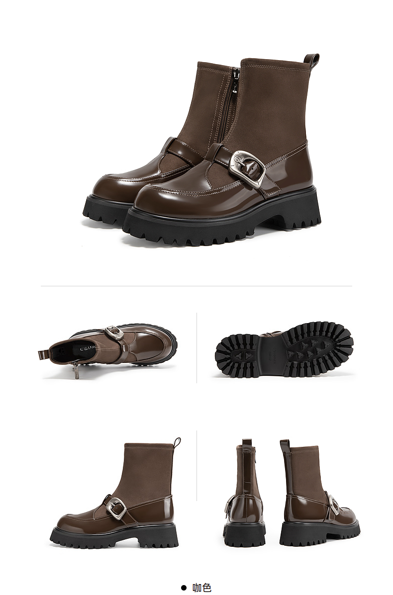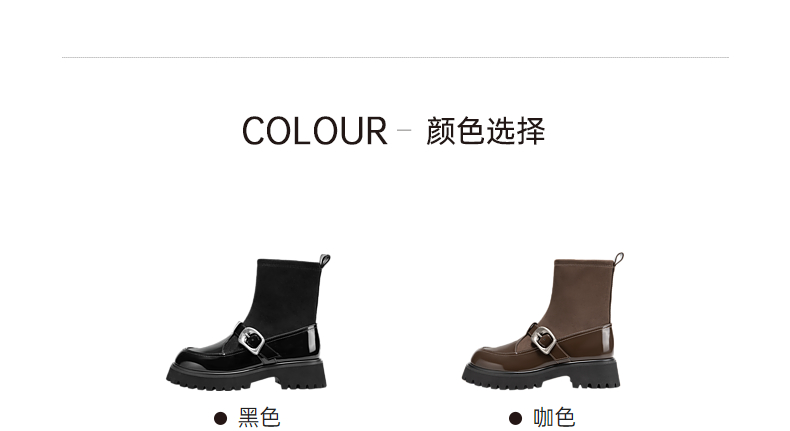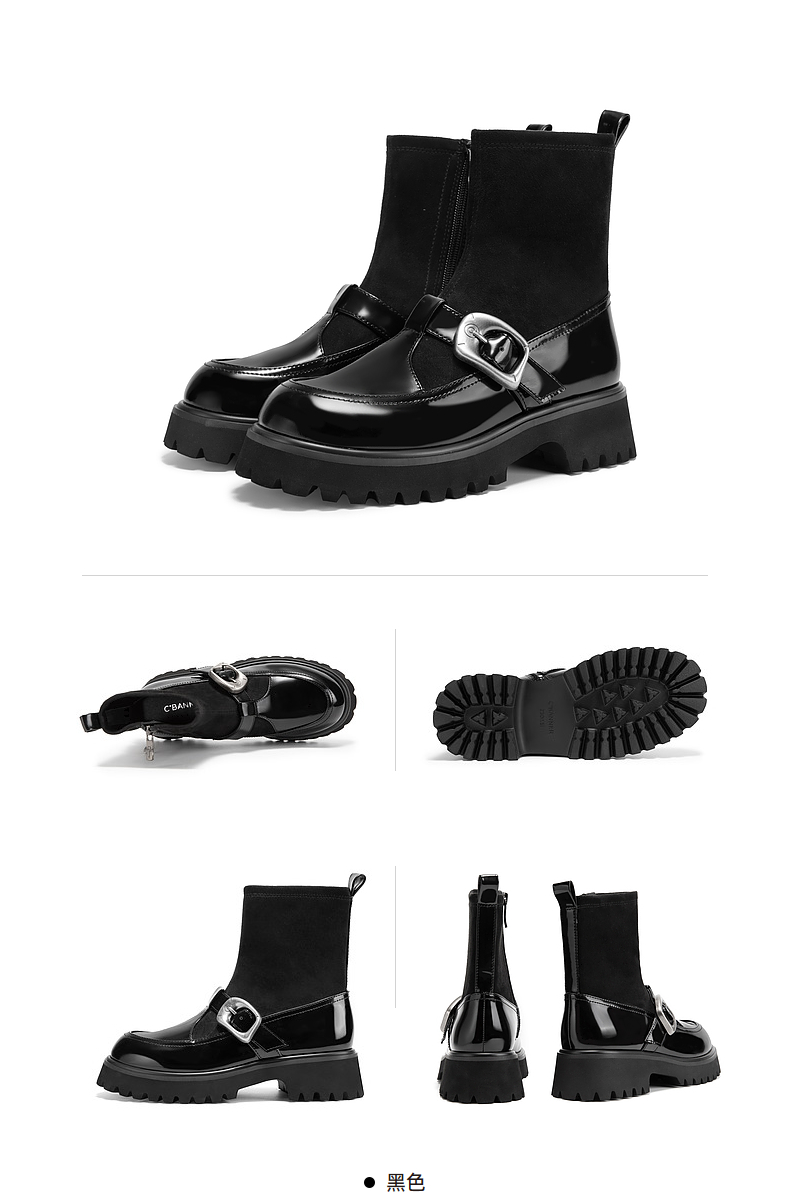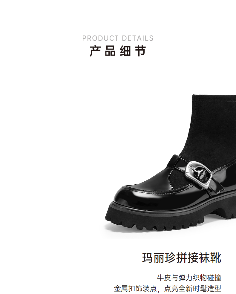 千百度厚底玛丽珍拼接弹力靴袜靴女冬季漆皮增高短靴子A24582808
