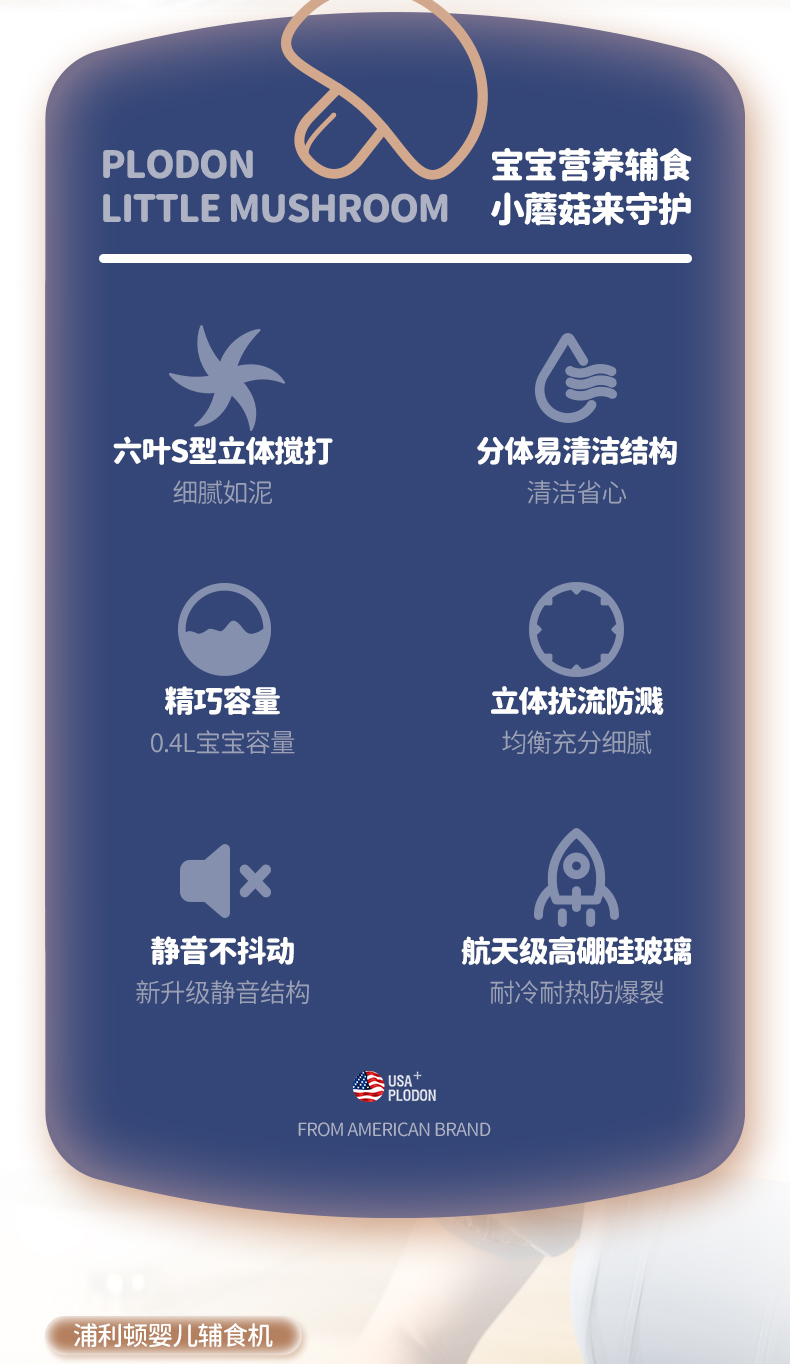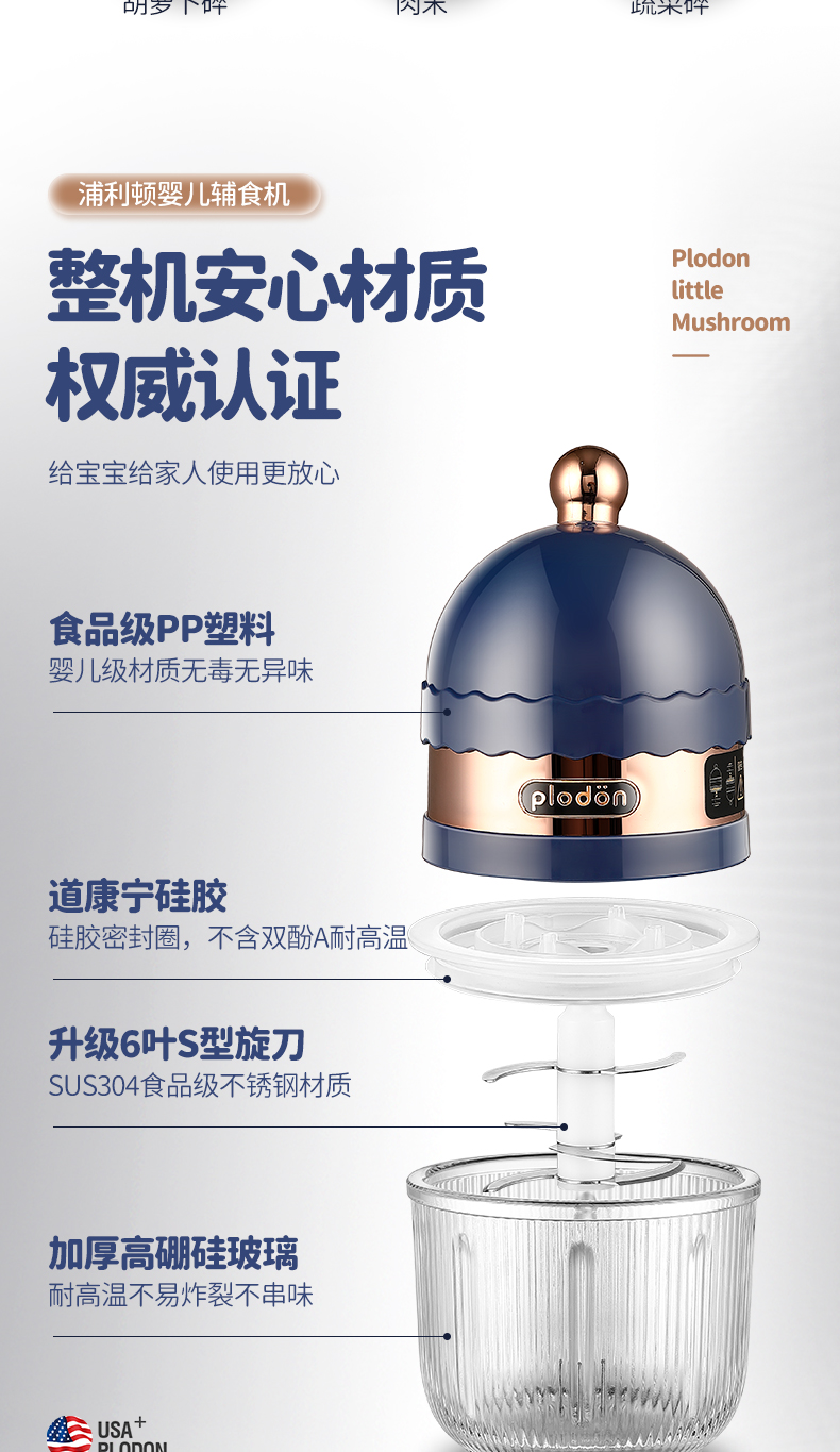 【现货发】【浦利顿蘑菇款辅食机】婴儿宝宝料理机打泥机工具小型搅拌器
