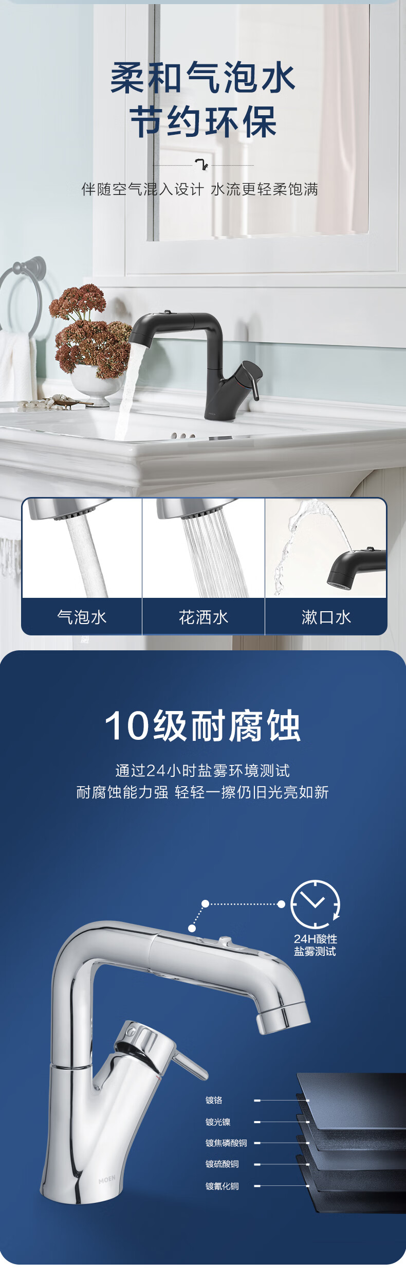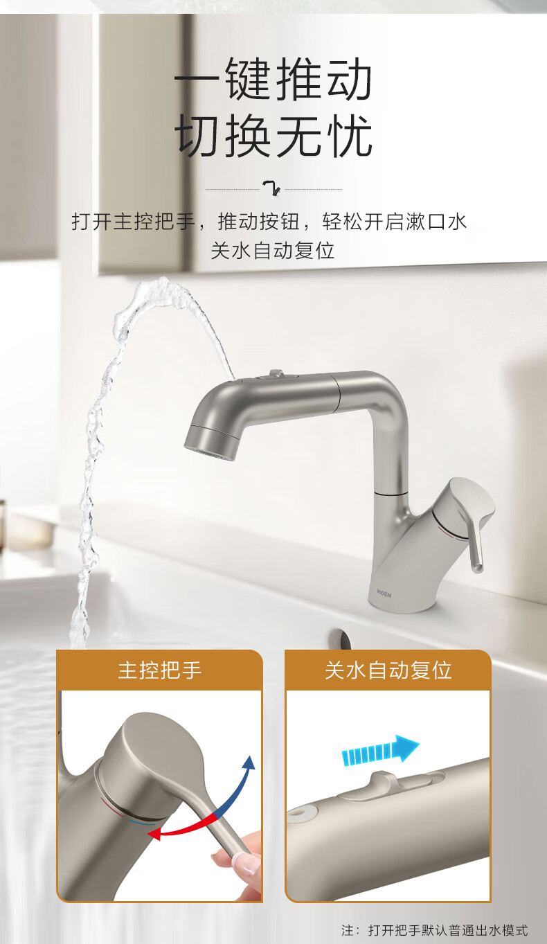 摩恩(MOEN)漱口抽拉水龙头冷热卫生间洗脸盆浴室柜龙头89124M 89124MSRN GN89124M 漱口水+抽拉式龙头*亮