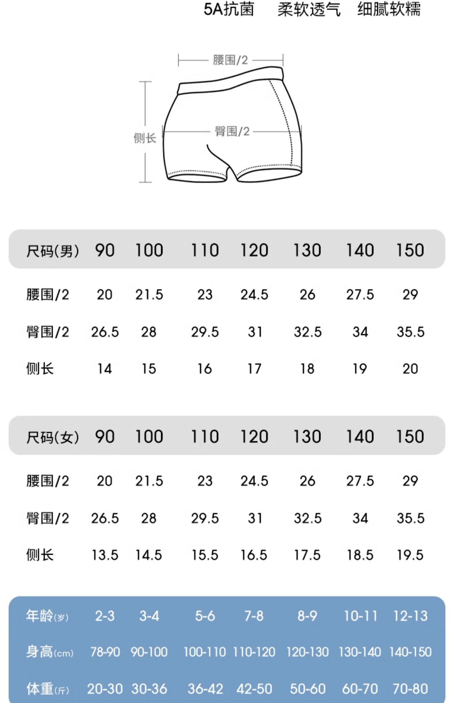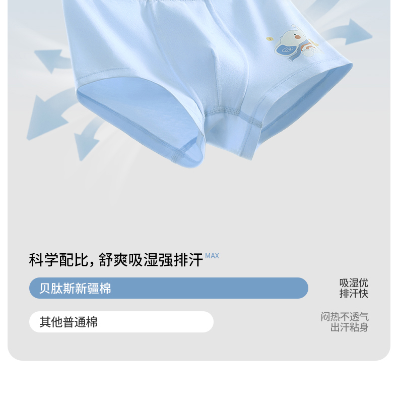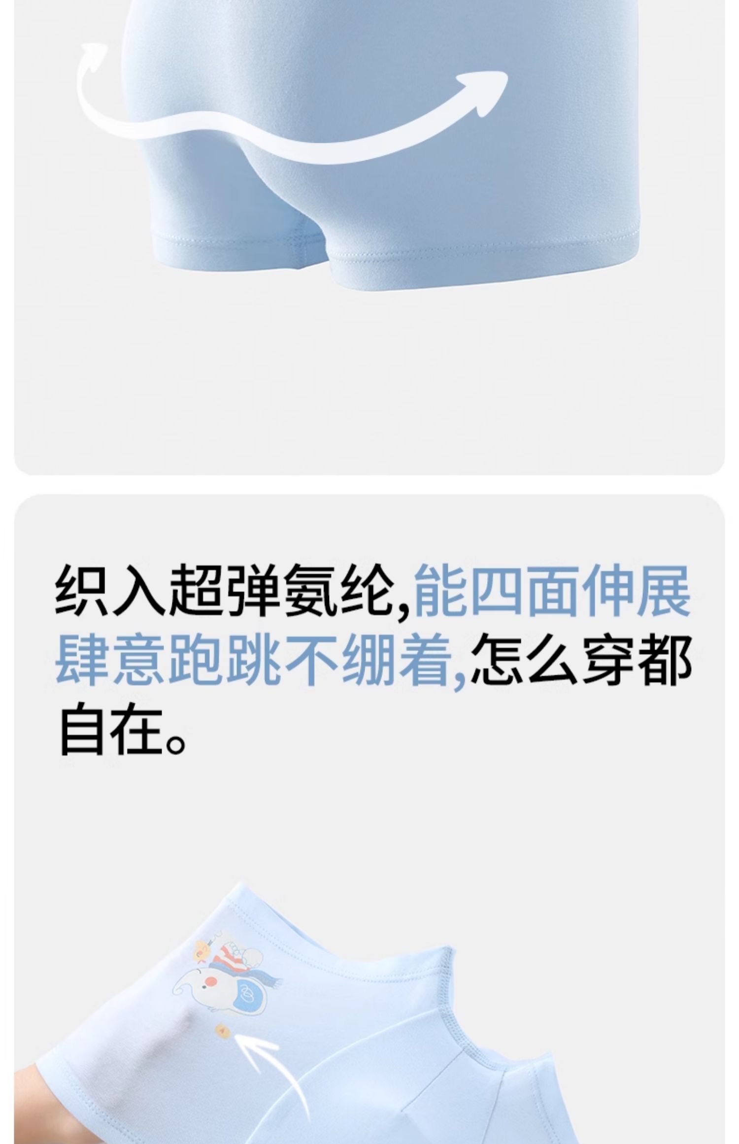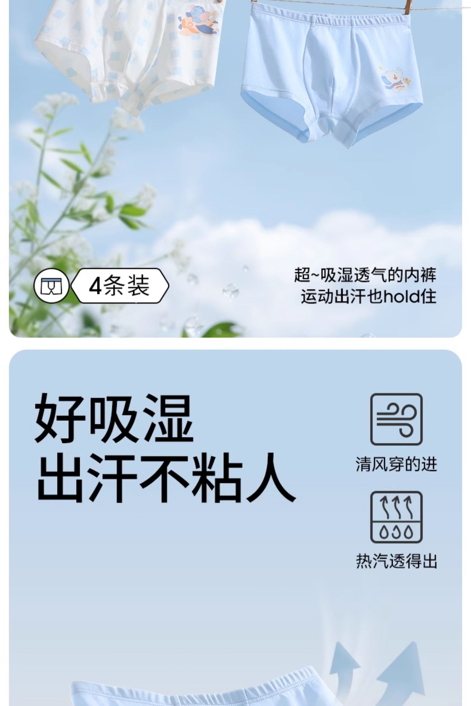 贝肽斯儿童内裤男童纯棉小男孩内裤青少年四角裤抗菌透气不夹屁屁