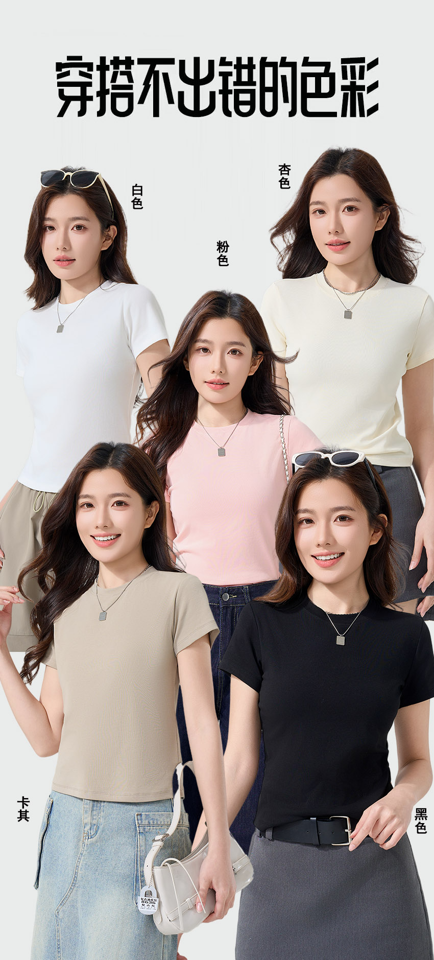 三件99元女款【植鹿正肩显瘦纯色百搭短袖T恤】 质地轻软触感柔和 不易起皱变形耐穿 更贴合更舒适