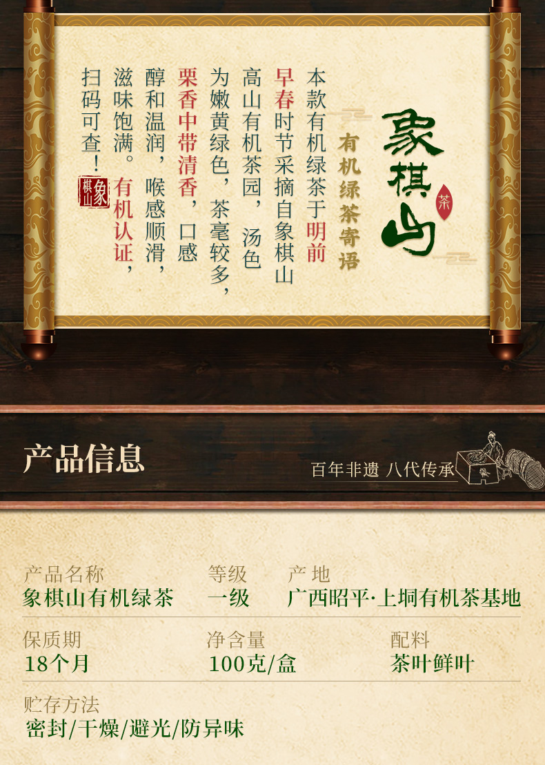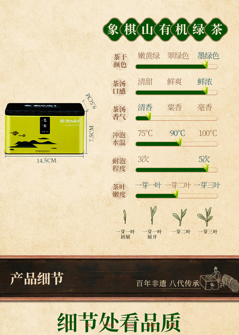 象棋山有机明前毛尖(绿茶)100g/罐