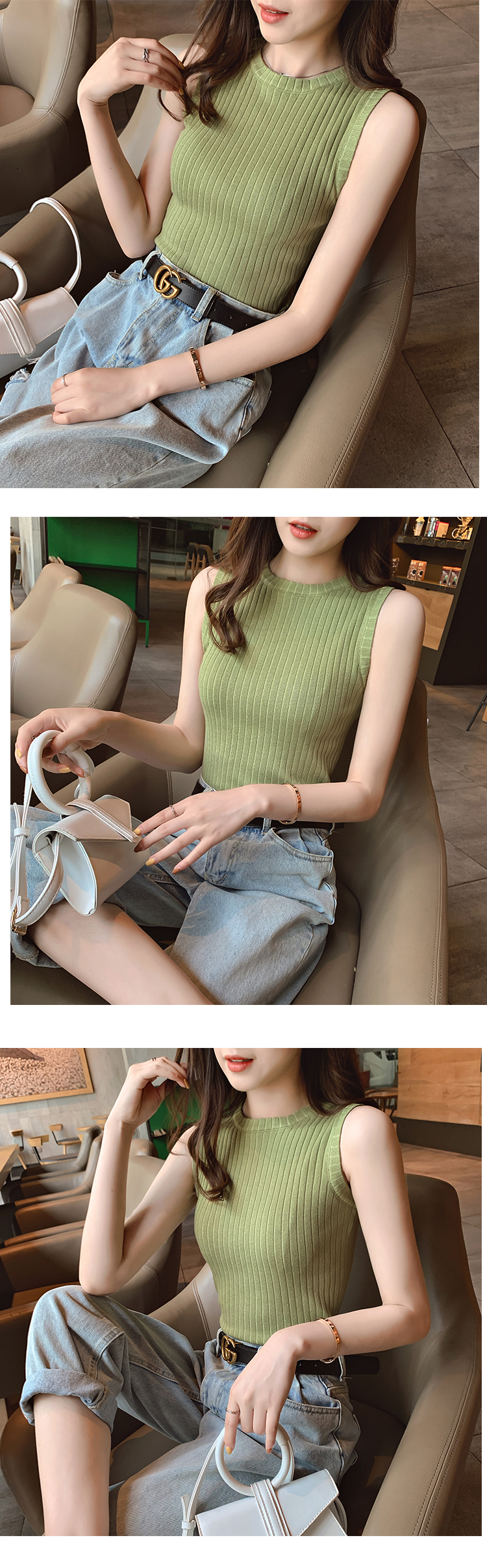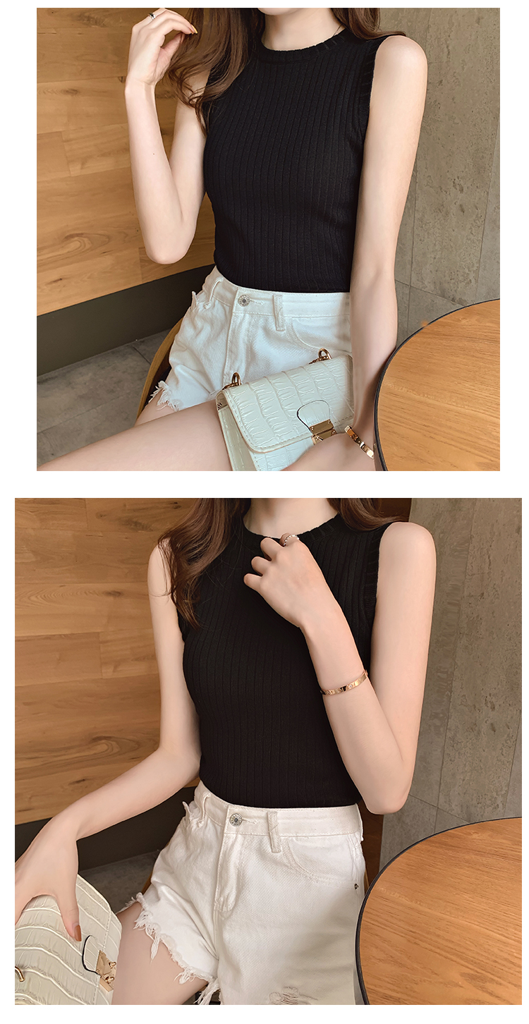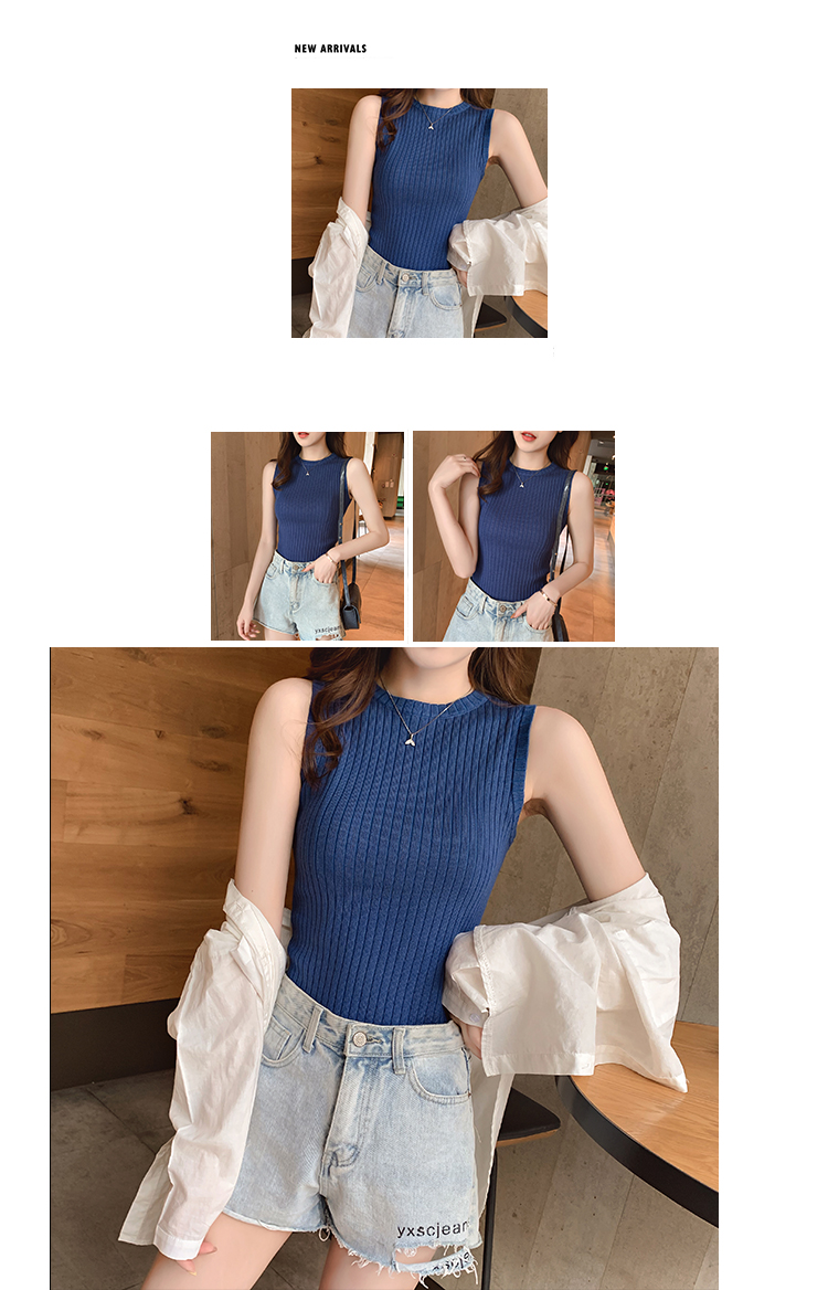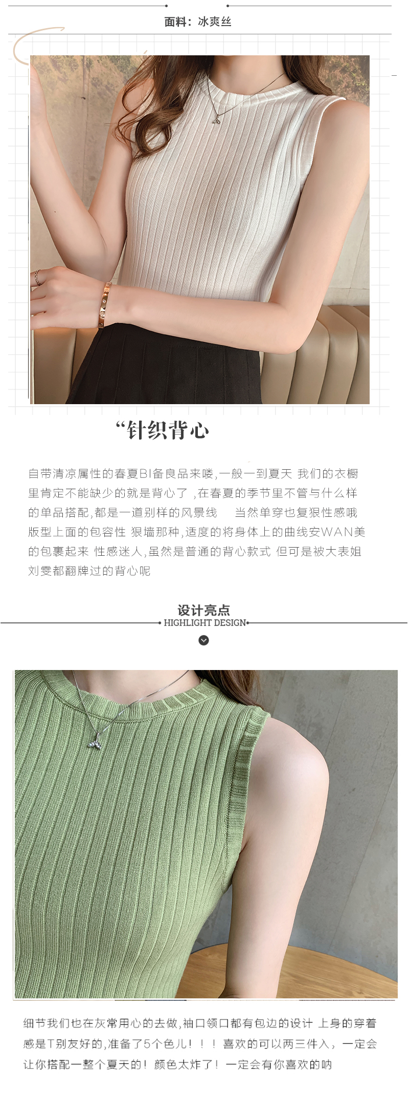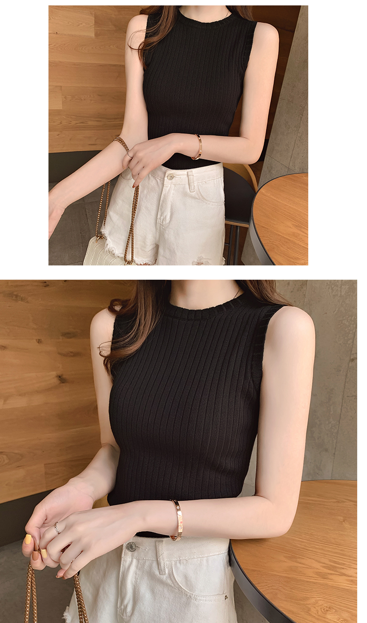针织背心女秋夏外穿修身心机无袖T恤圆领冰丝吊带上衣内搭打底衫
