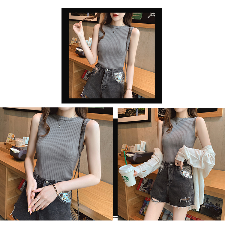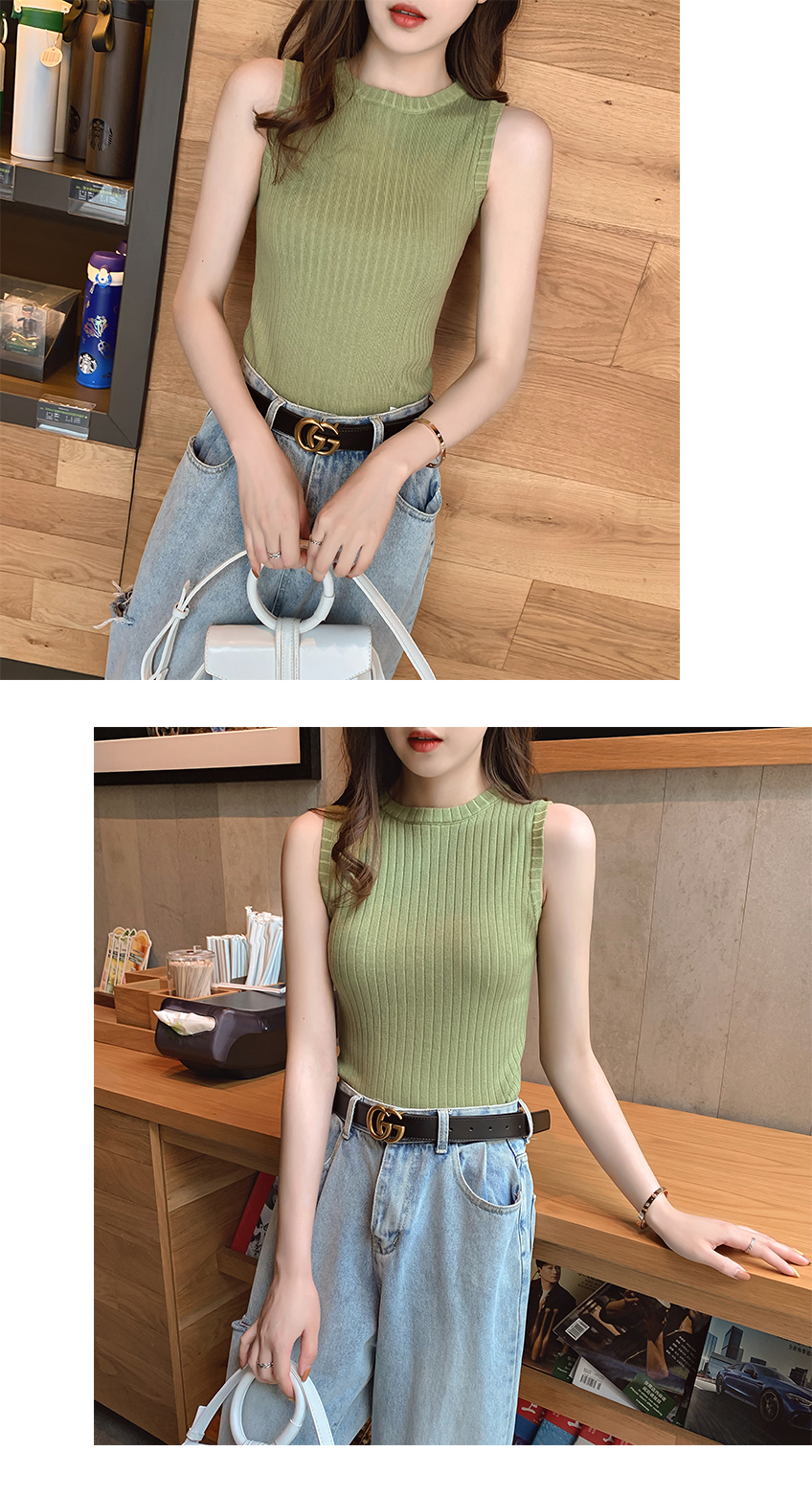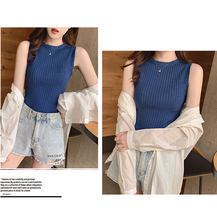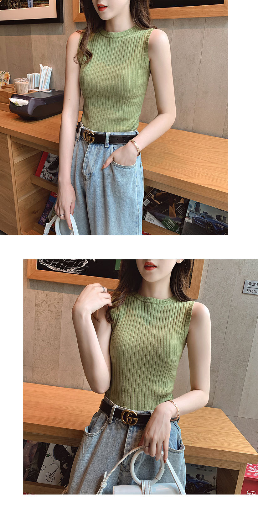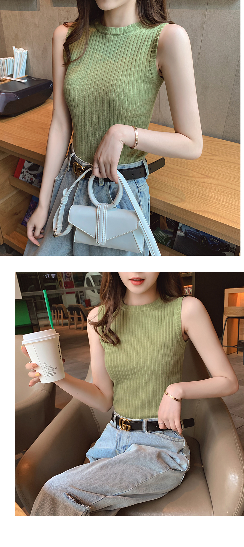 针织背心女秋夏外穿修身心机无袖T恤圆领冰丝吊带上衣内搭打底衫