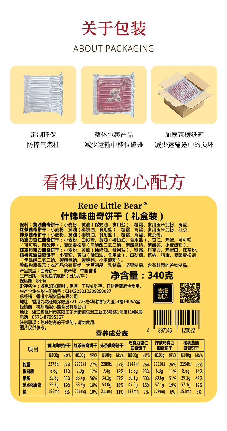 【顺丰包邮】Rene Little Bear 香港小熊 什锦味曲奇饼干 340g A-5091