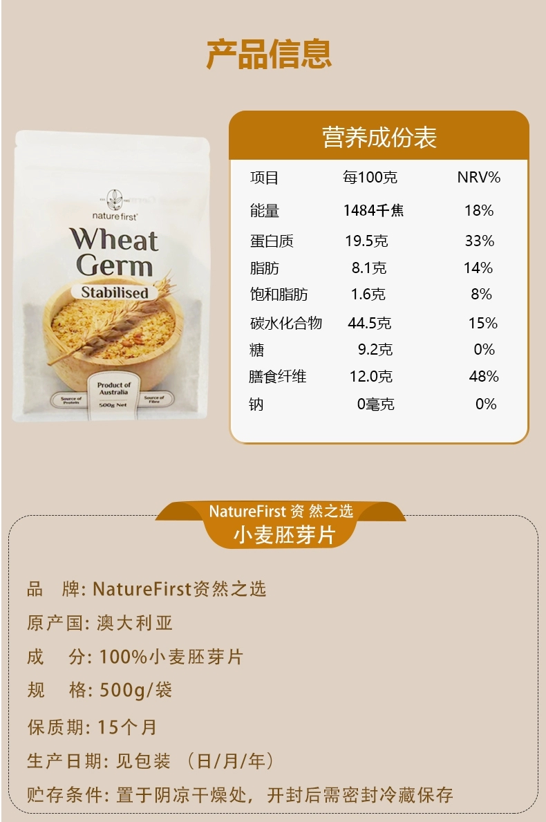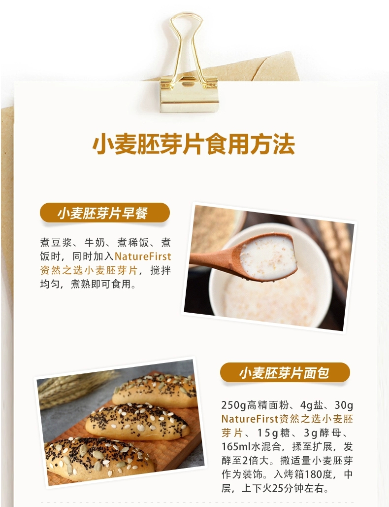 NatureFirst资然之选小麦胚芽片500g/033758 不添加任何香料和防腐剂 配料只有小麦胚芽片