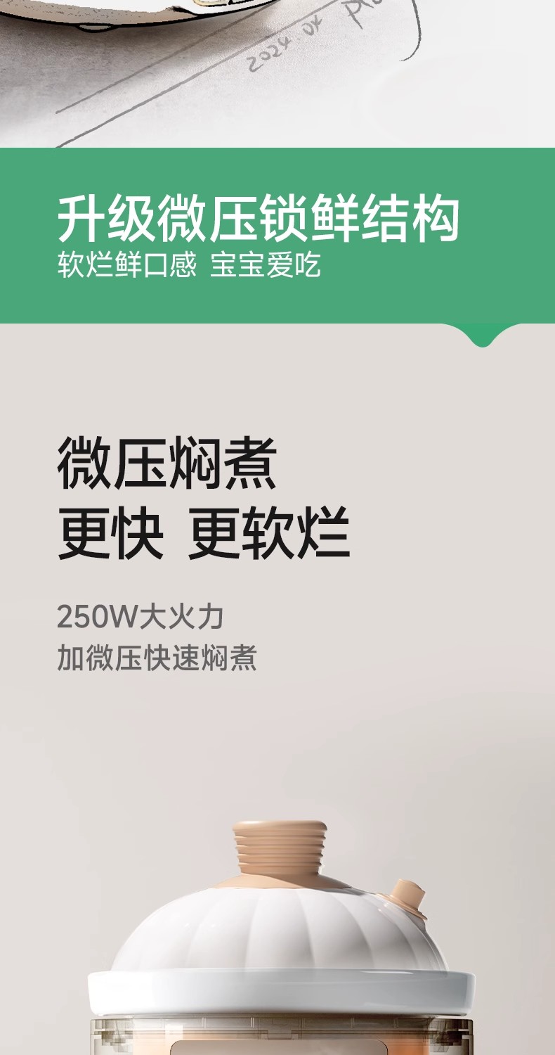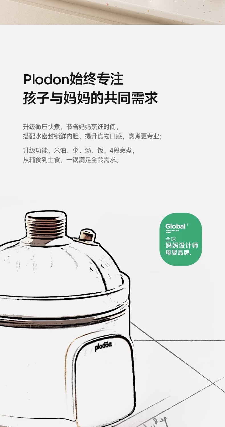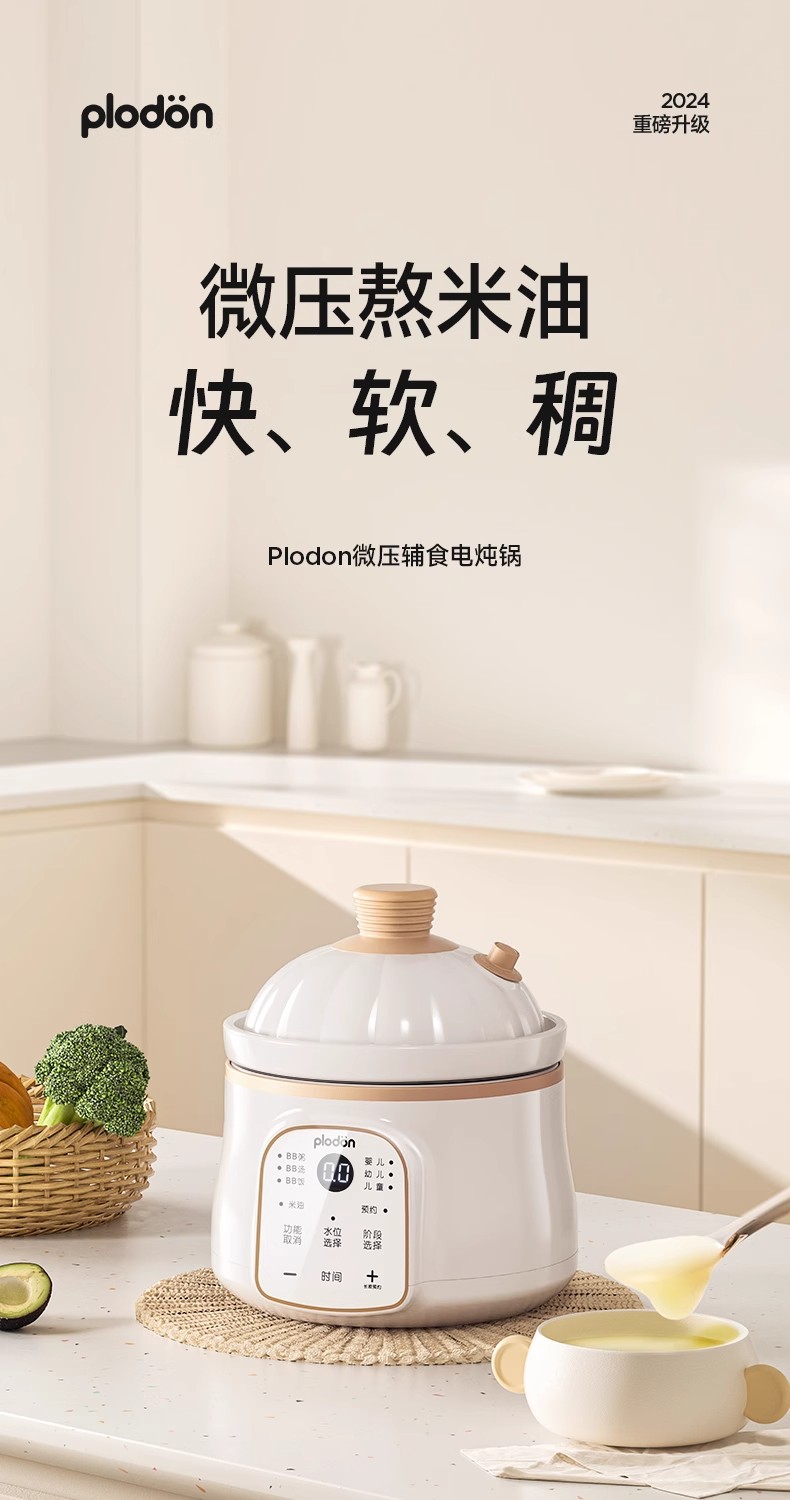 plodon浦利顿微压辅食锅婴儿宝宝辅食小电饭煲炖锅BB煲煮粥炖盅