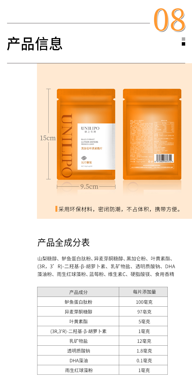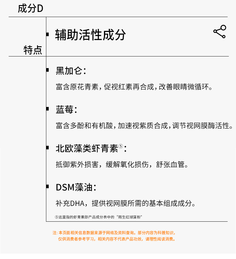 ⁶眼睛的营养【黑加仑叶黄素酯片】每粒叶黄素酯5mg+玉米黄素1mg+100mg金目鲈鱼胜肽+100单位DHA+4mg虾青素+玻尿酸等,3岁以上可用 30粒/袋【研知有理】 SS06-QTT-YZYL