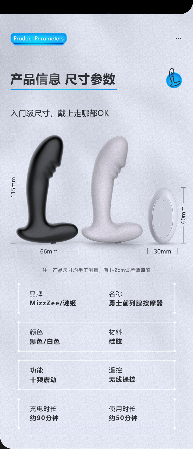 谜姬 勇士前列腺按摩器后庭男性用品自慰器震动棒另类玩具可穿戴式肛塞私处电动高潮开肛抽插成人情趣