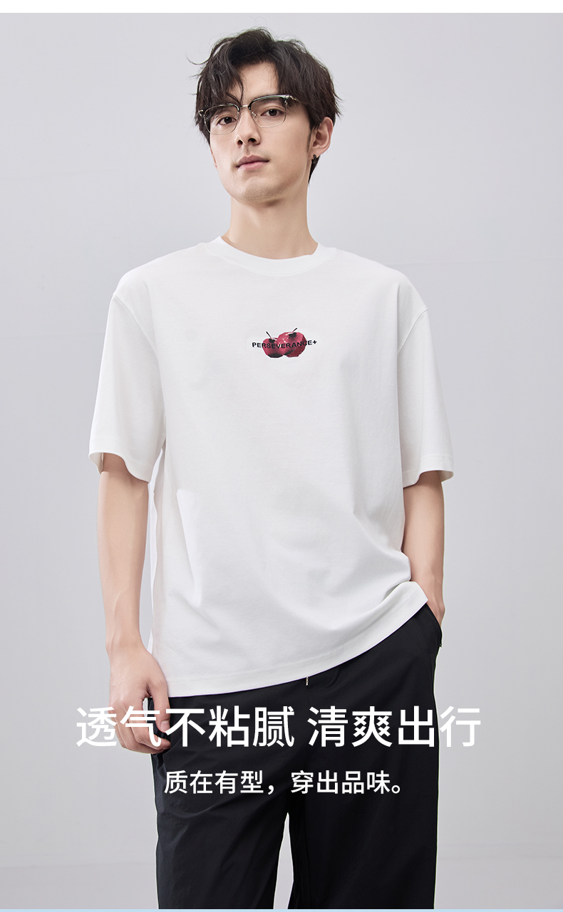 贝纳川夏季圆领印花短袖T恤ECF214124