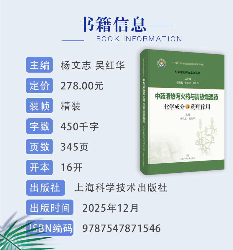 中药清热泻火药与清热燥湿药化学成分与药理作用 组分中药研究系列丛书 杨文志 吴红华 主编 9787547871546上海科学技术出版社