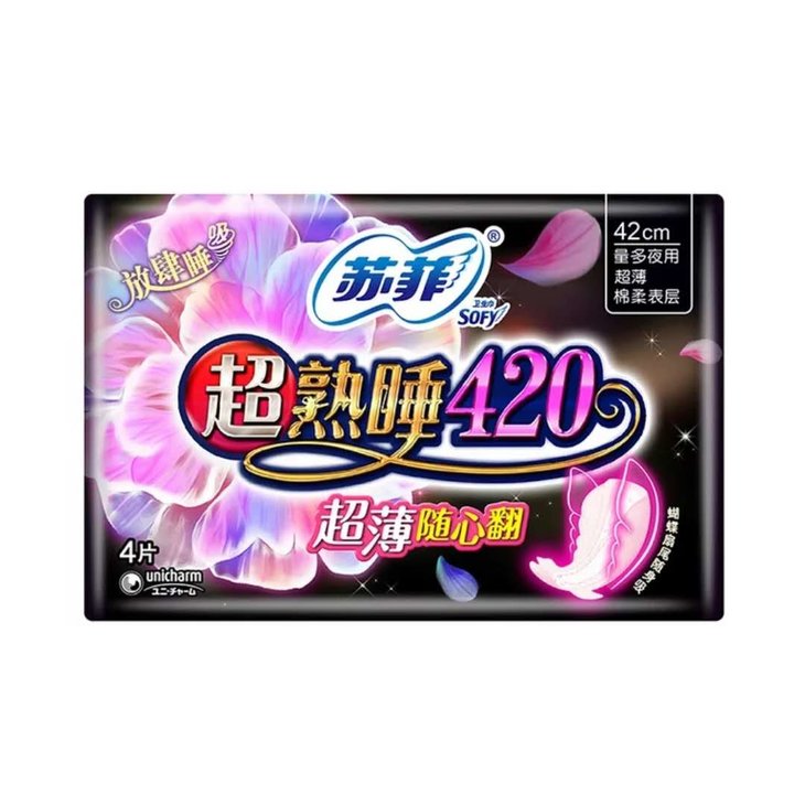 苏菲超熟睡超薄随心翻夜用卫生巾420mm4片装