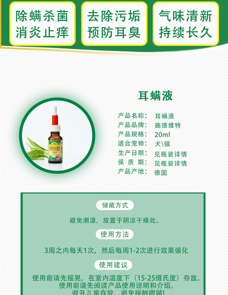 德国cdvet施德维特耳道清洁护理液/地前门洗耳液/耳螨液