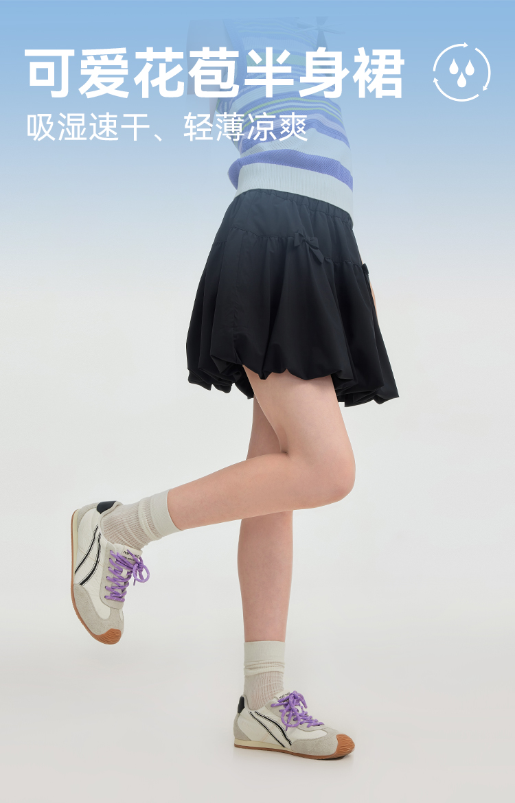 水孩儿童装速干短裙女童26夏季新款可爱风蝴蝶结半身裙大童花苞裙