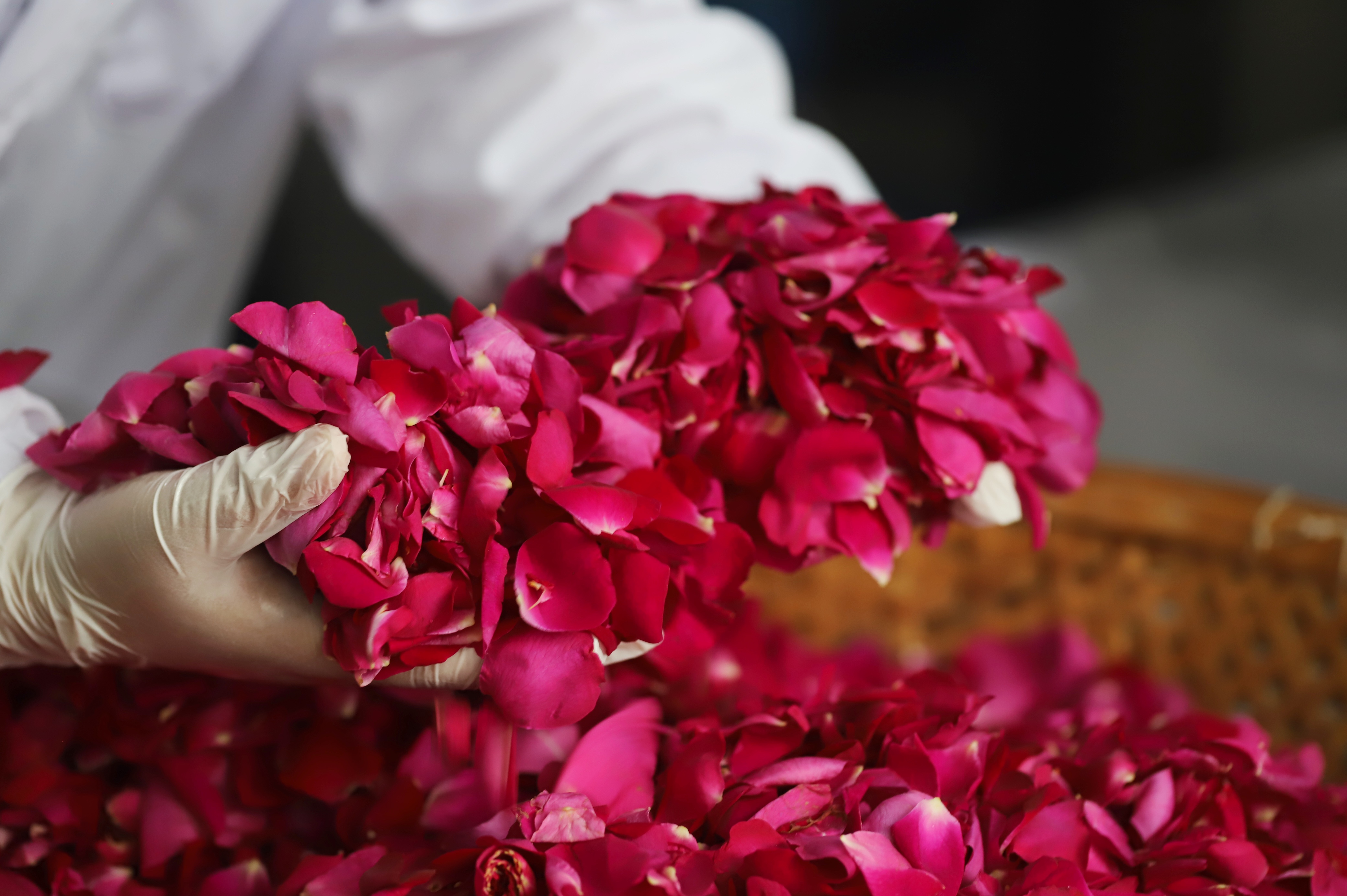 我们的有机重瓣红玫瑰全部采摘自云南海拔1900米有机种植基地的晨露玫瑰,这里拥有其他区域无法比拟的优势—四季如春的气候,优质充沛的日照,高氧含量的种植环境。为保留花瓣的浓郁香气,清晨5、6点就要开始采摘鲜花。采摘后层层挑选,当天腌制,保证新鲜、本味的口感。
