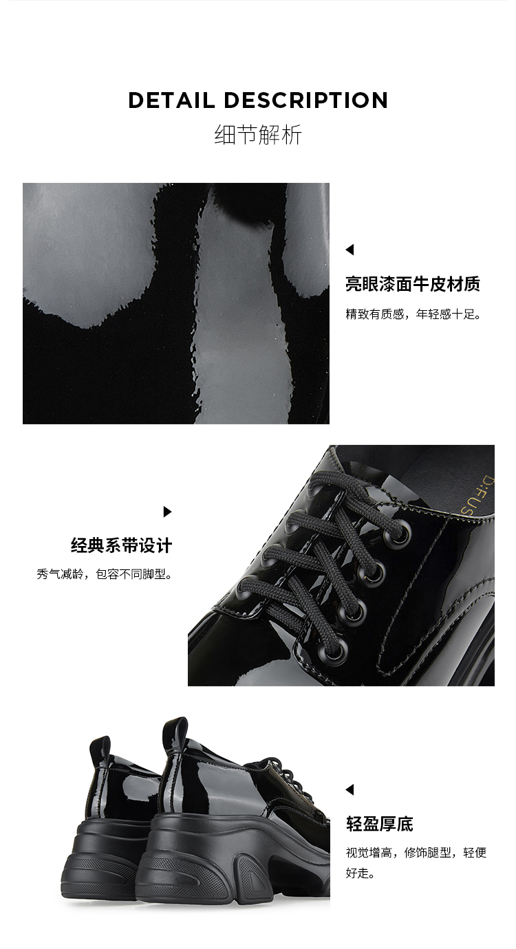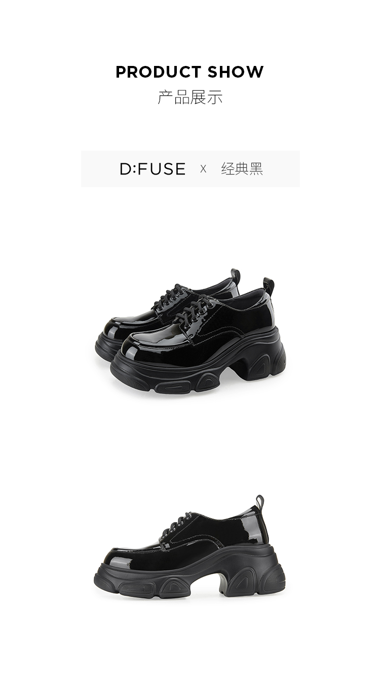 D:FUSE迪芙斯秋季新款漆皮系带厚底德比鞋DF43112364