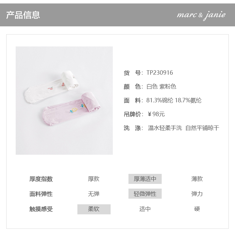 马克珍妮春装新款 女童柔软弹力透气印花打底连裤袜230916