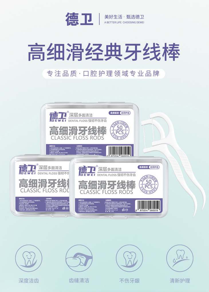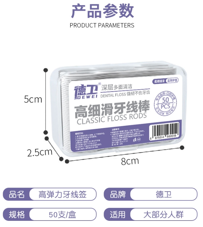 「50支盒装」一次性牙线独立包装牙线盒 弹力剔牙签线口腔清洁牙线棒