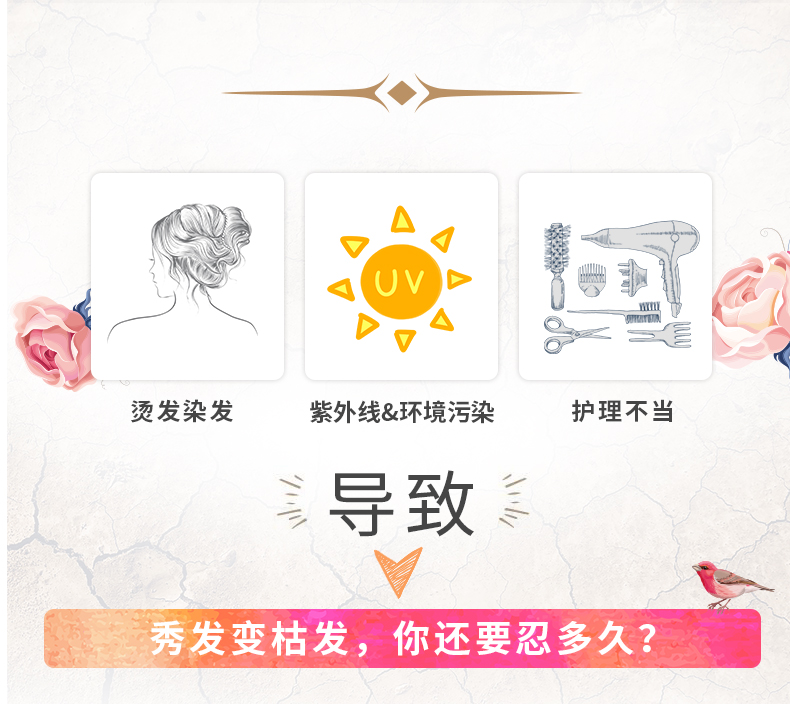 我以前的发质是又粗又硬的那种还带点自然卷,女孩子烫染什么的头发折腾多了现在就变成细软发了而且还干枯毛躁!
