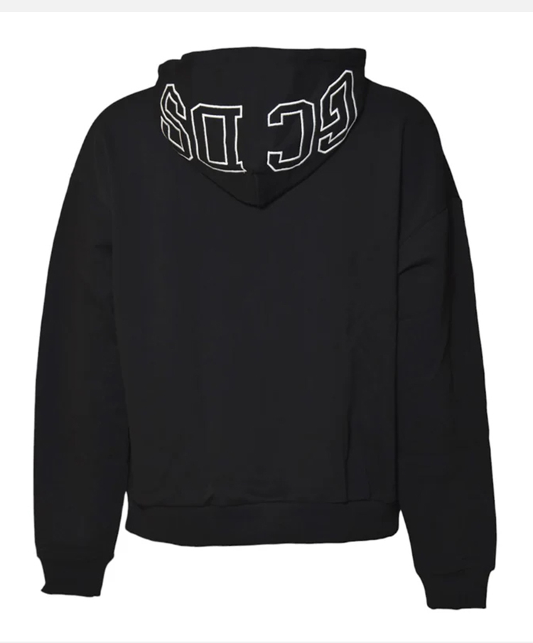 GCDS 男士字母徽标刺绣棉质拉链连帽夹克外套 黑色 B1CM2000JG5 99