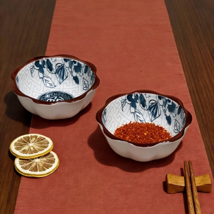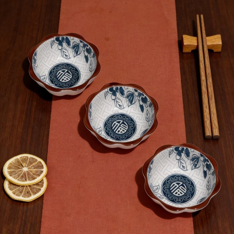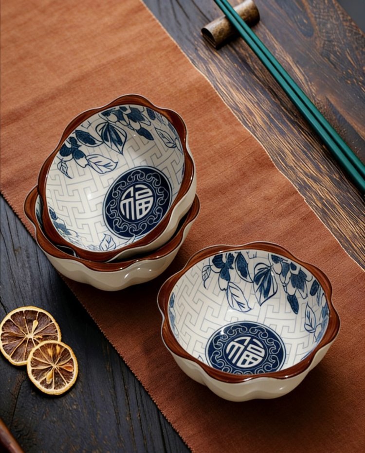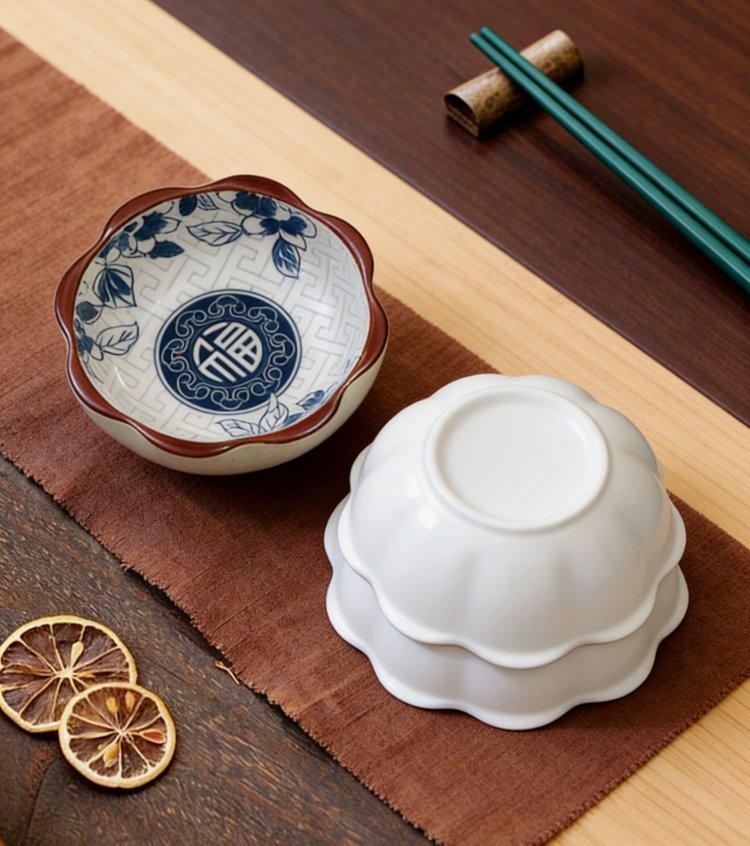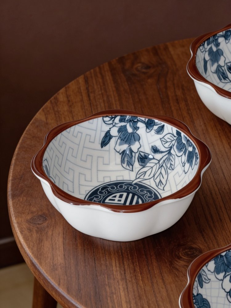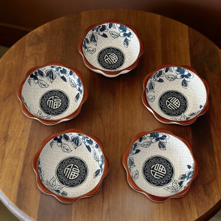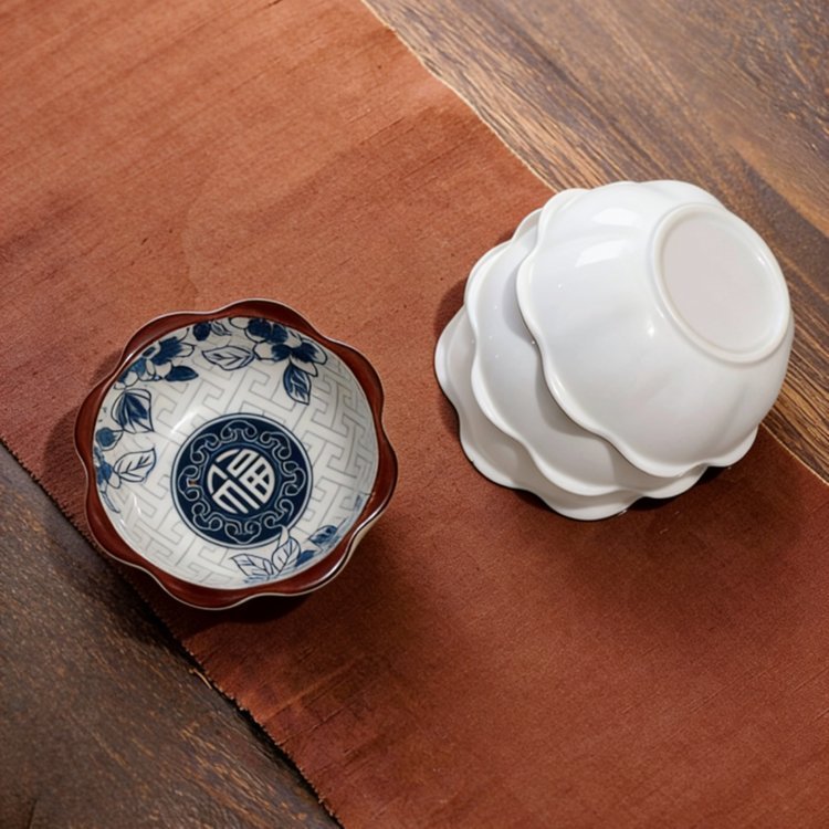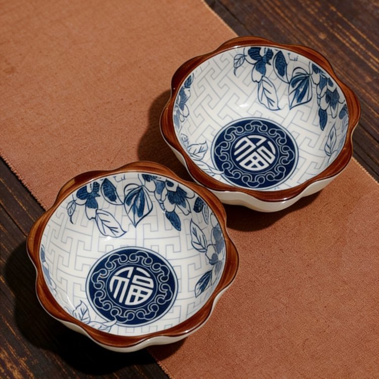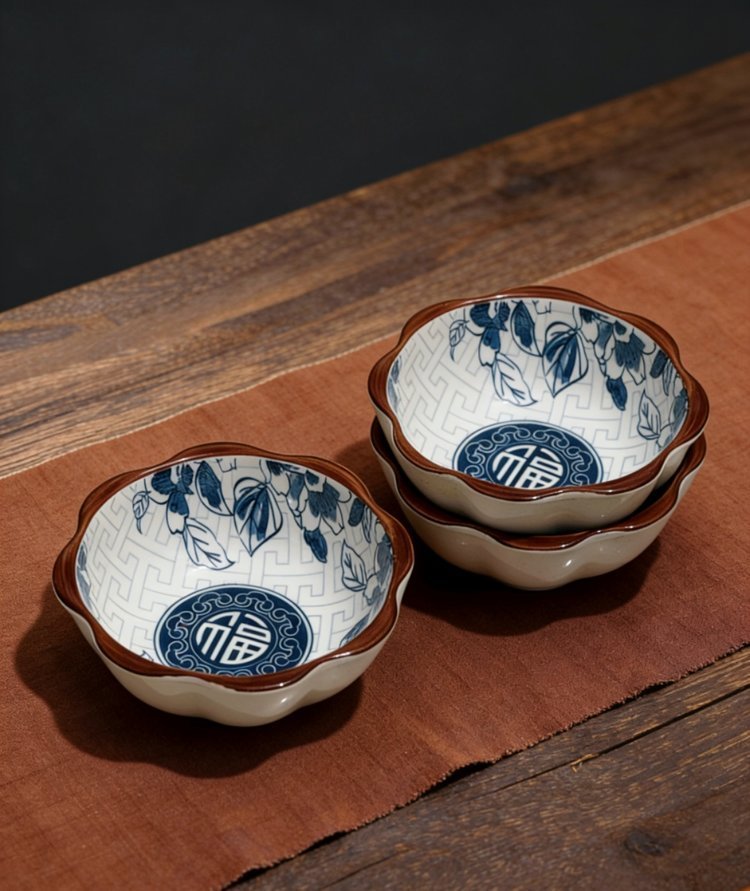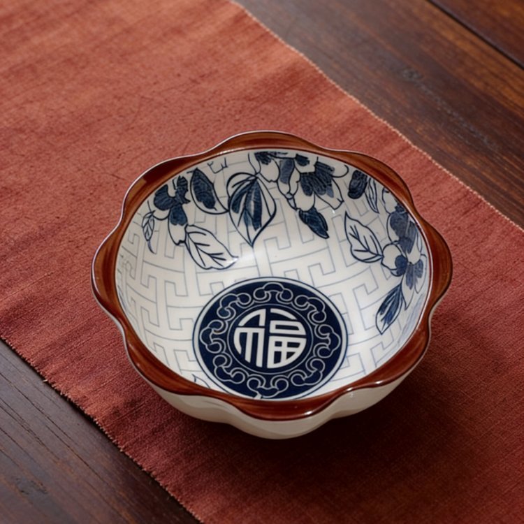 【外贸孤品捡漏】灼瓷·青花福字花瓣碗