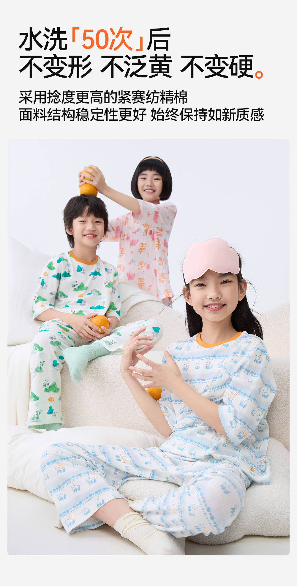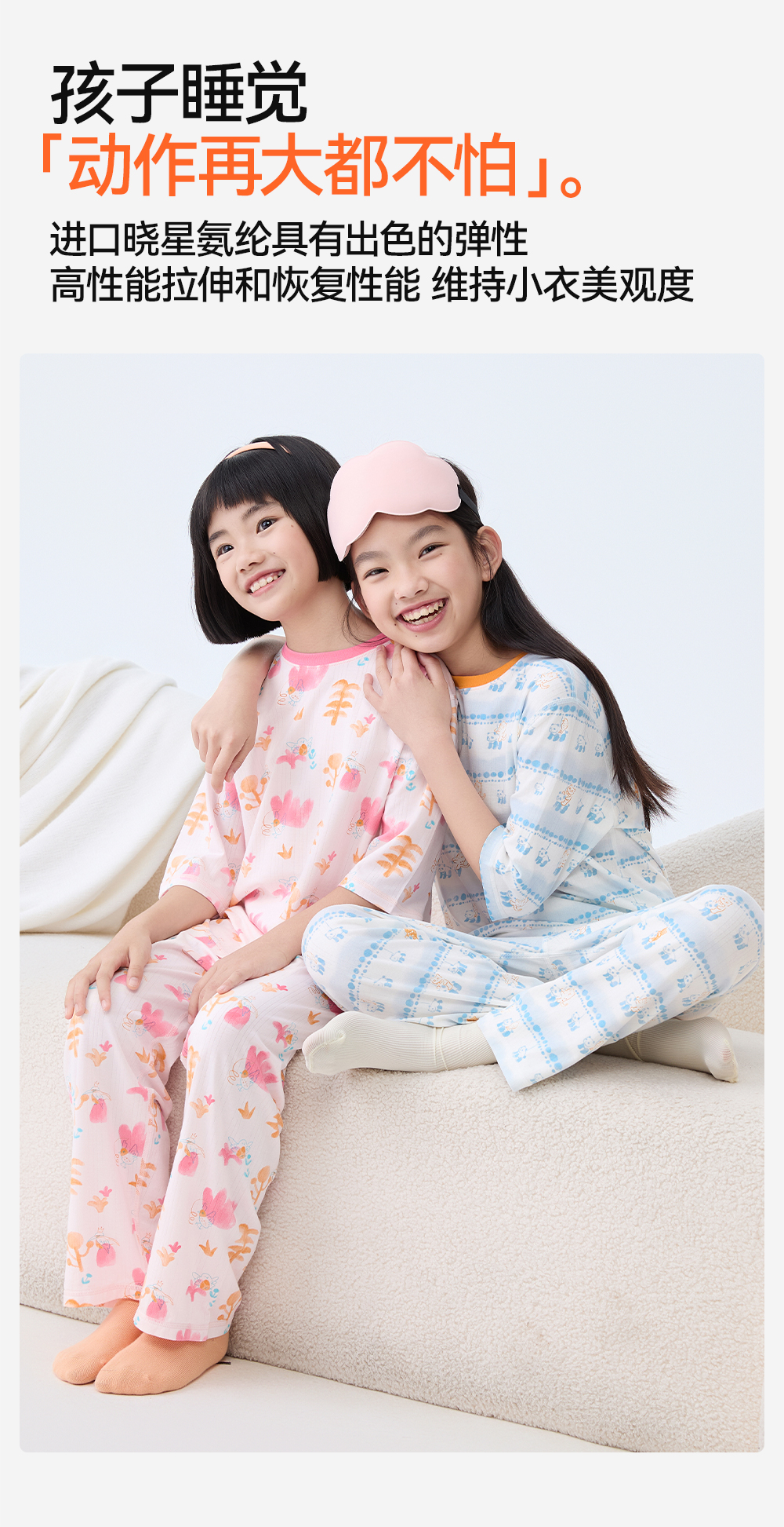 采用导汗槽设计,形成立体导湿网络,吸湿更高效,透气性更好,孩子即使大量出汗也能保持干爽舒适;精梳棉氨纶混纺,触感轻柔细腻,全方位高回弹,孩子睡觉大动作都无束缚感。