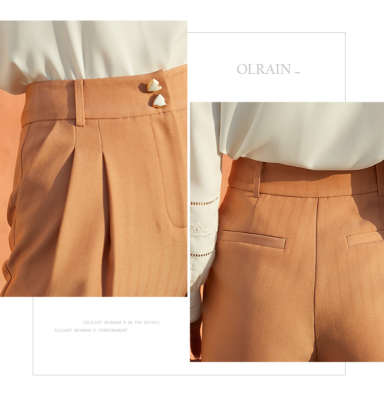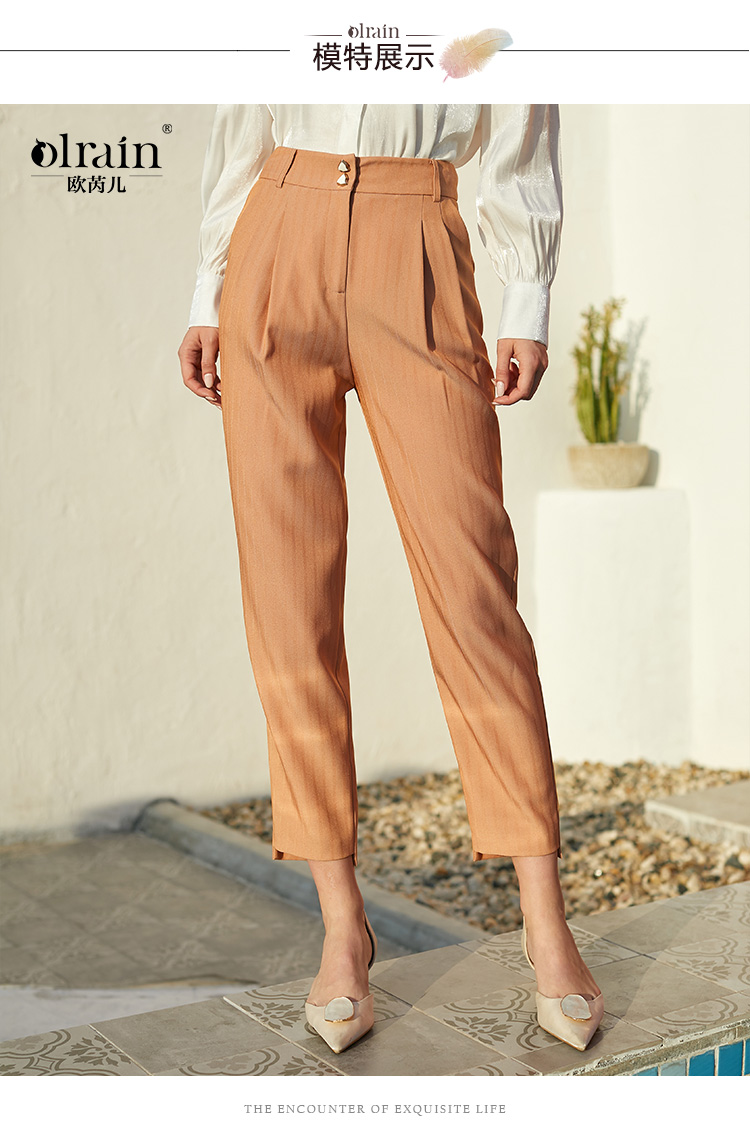 欧芮儿春新款高腰显瘦条纹休闲裤
