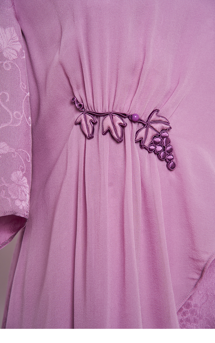 吉祥衣家新中式国风蚕桑丝裙子气质修身女装紫藤云木真丝连衣裙